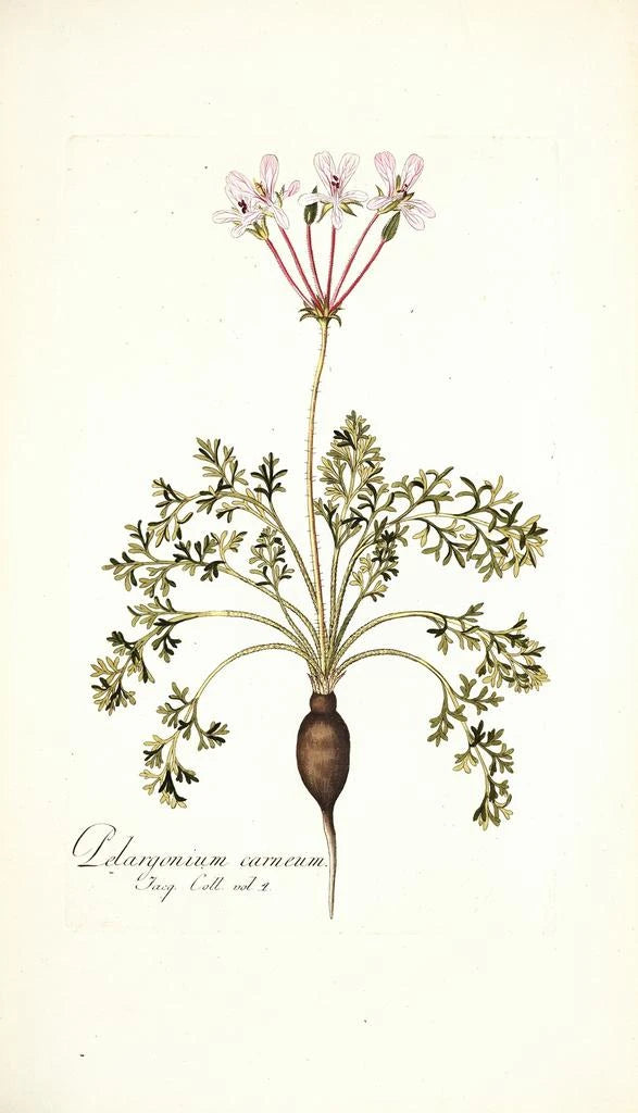 Nikolaus Joseph Freiherr von Jacquin jest uznawany za jednego z pionierów ilustracji botanicznych w XVIII wieku. Jego dogłębne badania i podróże pozwoliły mu odkryć i udokumentować wiele roślin, w tym Pelargonium carneum. Pod wpływem ówczesnych nurtów naukowych, Jacquin umiał połączyć sztukę i naukę, czyniąc swoje dzieła nie tylko estetycznymi, ale także edukacyjnymi. Jego praca wywarła trwały wpływ na botanikię i sztukę, czyniąc z niego ikonę w tych dziedzinach.