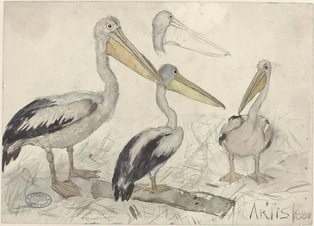 Jan van Essen, holenderski artysta z XIX wieku, jest znany z żywych przedstawień fauny i flory. Pod wpływem romantyzmu, potrafił uchwycić istotę natury z unikalną wrażliwością. Jego prace często koncentrują się na pejzażach i zwierzętach, odzwierciedlając epokę, w której obserwacja natury była kluczowa dla artystów. Van Essen był również inspirowany technikami mistrzów flamandzkich, wprowadzając elementy realizmu do swoich dzieł. Jego wkład w sztukę zwierzątczną pozwolił mu się wyróżnić, a "Pélicans au zoo Artis" jest tego doskonałym przykładem, świadczącym o jego talencie i zaangażowaniu w naturalne piękno.