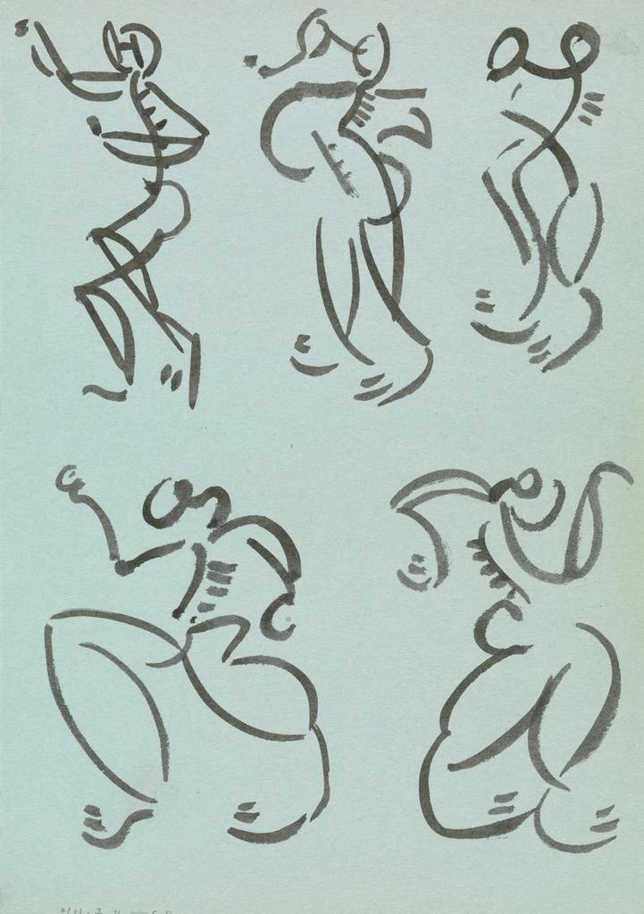 Druk artystyczny | Pięć studiów postaci tańczących - Henri Gaudier-Brzeska