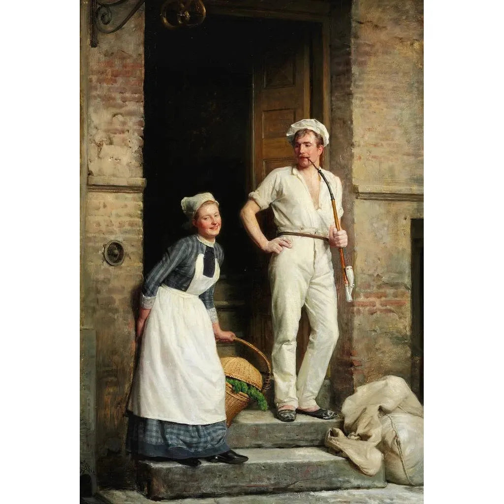 Carl Bloch, ikona duńskiego malarstwa, potrafił uwiecznić sceny codziennego życia z unikalną wrażliwością. Aktywny w XIX wieku, był pod wpływem romantyzmu i realizmu, co pozwoliło mu tworzyć dzieła zarówno dostępne, jak i głęboko ludzkie. Jego przedstawienia codziennych scen, takich jak piekarz, świadczą o jego zainteresowaniu małymi historiami, które tworzą wielki obraz duńskiego społeczeństwa. Bloch zdołał nawiązać więź między sztuką a życiem, czyniąc swoje dzieła ponadczasowymi i uniwersalnymi.