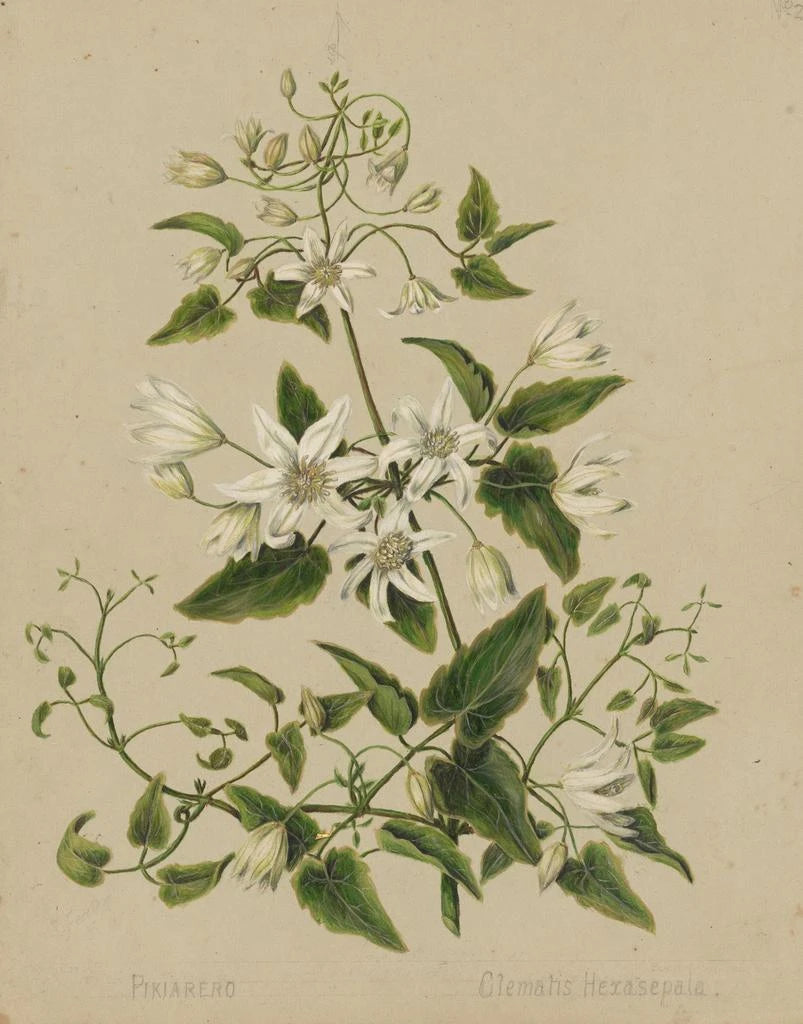 W 'Pikiarero Clematis hexasepala' Sarah Featon oferuje poetycką wizję typowej rośliny pnącej z Nowej Zelandii. Jej ilustracja wyróżnia się drobiazgowymi detalami i delikatną paletą kolorów, które przywołują na myśl delikatność tego gatunku. Jako botaniczna artystka, Featon potrafiła uchwycić istotę lokalnej flory, jednocześnie wprowadzając estetykę wykraczającą poza zwykłe przedstawienie. To dzieło świadczy o zaangażowaniu Featon w dziedzinę botaniki i jej pragnieniu dzielenia się pięknem swojego otoczenia. W nowoczesnym kontekście, ta ilustracja może dodać odrobinę natury i elegancji, zachęcając do spokoju. Druk artystyczny tego dzieła można odkryć na Artem Legrand.