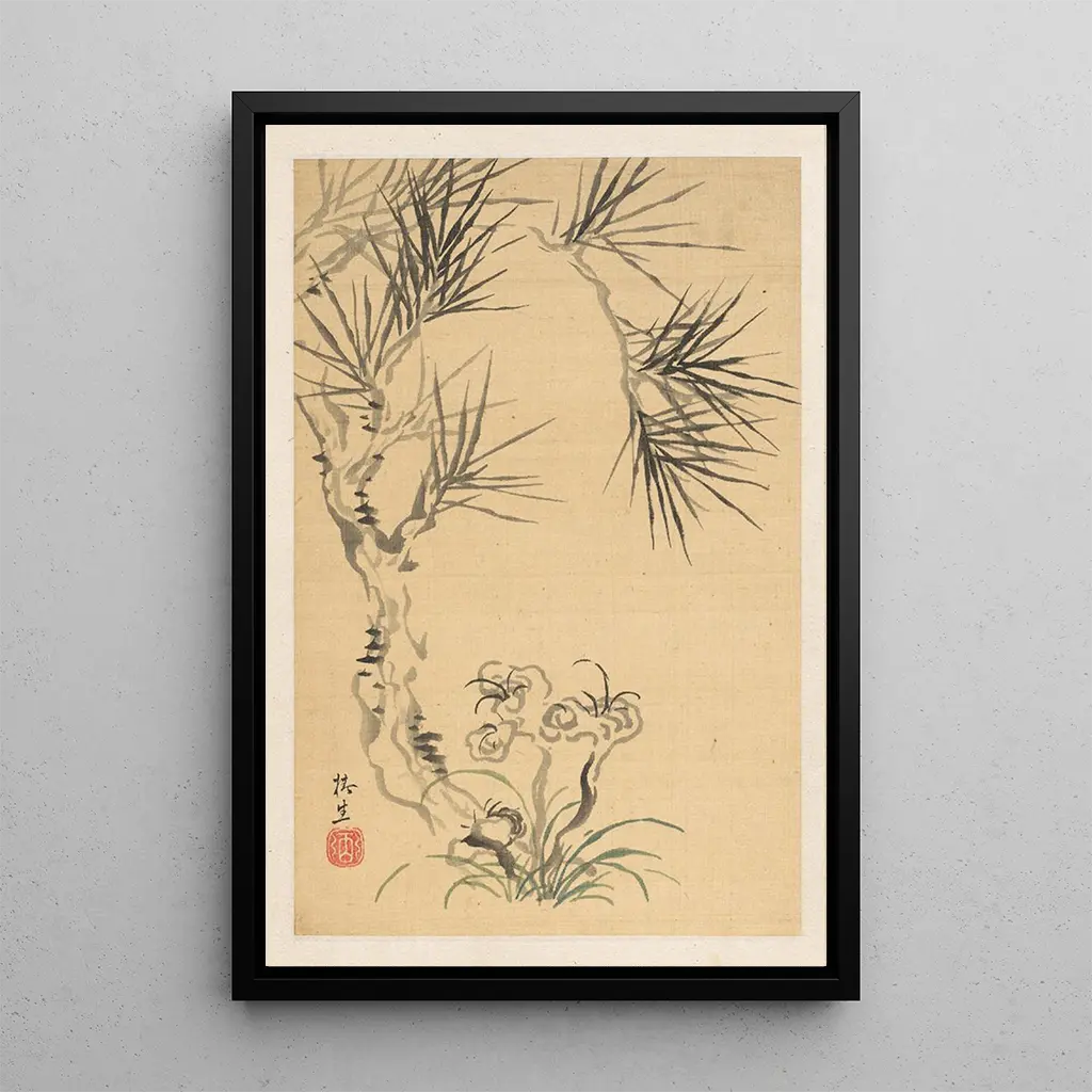 Ten druk artystyczny nawiązuje do spokojnej sceny, w której prostota piękna sosny łączy się z delikatnością grzyba. Odmiany zieleni i ziemi, subtelnie oddane, tworzą spokojną i kontemplacyjną atmosferę. Technika malarska, podkreślająca precyzję detali, pozwala odczuć teksturę naturalnych elementów. To dzieło, pełne poezji, zachęca do refleksji nad efemerycznym pięknem natury i symbiozą różnych form życia. Każdy pociągnięcie pędzla wydaje się uchwycić moment spokoju, czyniąc to dzieło prawdziwym azylem wizualnego spokoju.