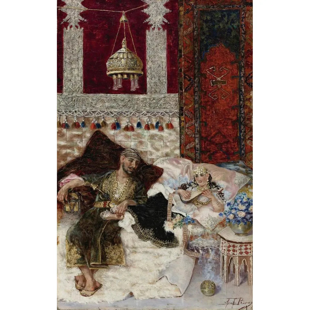 Antonio Rivas, artiste du XIXe siècle, est reconnu pour sa contribution à l'orientalisme, un mouvement qui a fasciné les artistes européens. Influencé par ses voyages et par la littérature de son temps, Rivas a su capturer l'essence de cultures lointaines à travers ses œuvres. Son style, caractérisé par une attention minutieuse aux détails et une palette de couleurs vibrantes, reflète son admiration pour l'Orient. Bien que son nom ne soit pas aussi célèbre que ceux d'autres artistes orientalistes, son travail mérite d'être redécouvert pour sa capacité à évoquer des émotions profondes et des paysages exotiques.