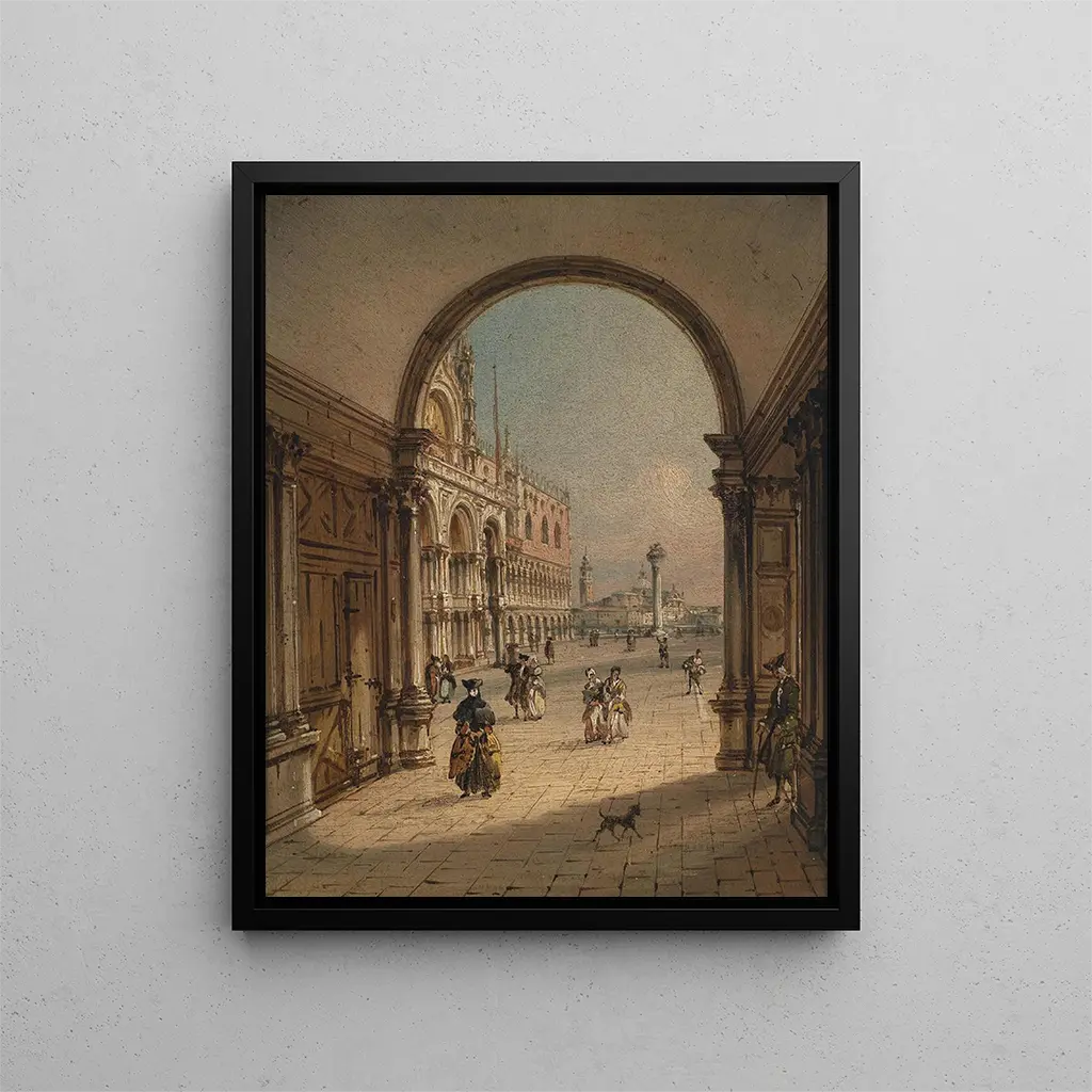 Reprodukcja Place Saint-Marc - Carlo Grubacs – Wciągające wprowadzenie W urzekającym świecie sztuki niektóre dzieła potrafią uchwycić istotę miejsca, oddając jego duszę i piękno. Druk artystyczny Place Saint-Marc - Carlo Grubacs jest jednym z tych dzieł, które natychmiast przenoszą nas w serce weneckiej magii. Plac, prawdziwy symbol Serenissimy, jest tutaj przedstawiony z precyzją i wrażliwością, które zachęcają do kontemplacji. Żywe kolory, migoczące światła i ożywienie postaci zamieszkujących tę scenę nie tylko odzwierciedlają majestatyczną architekturę, ale także unikalną atmosferę panującą w Wenecji. Dzieło Grubacs, poprzez przedstawienie tego ikonicznego miejsca, oferuje nam sensoryczną podróż, ucieczkę do brzegów pełnych historii. Styl i wyjątkowość dzieła Styl Carlo Grubacs wyróżnia się zdolnością do łączenia realizmu z impresjonizmem. W druku artystycznym Place Saint-Marc każdy szczegół jest starannie opracowany, od zdobionych fasad budynków po refleksy na wodzie kanałów. Grubacs doskonale uchwyca światło, które tańczy na brukach placu i podkreśla odcienie kostiumów przechodniów. Ta gra światła i cienia tworzy żywą, niemal namacalną atmosferę, która czyni z tego dzieła prawdziwy obraz życia. Kompozycja, z kolei, jest starannie wyważona, kierując wzrok widza przez różne elementy sceny. Postacie, choć drugoplanowe, dodają dziełu wymiaru ludzkiego, przypominając, że Place Saint-Marc to nie tylko miejsce turystyczne, ale także przestrzeń spotkań i wymiany. Artysta i jego wpływ Carlo Grubacs, włoski malarz XIX wieku, jest często kojarzony z szkołą wenecką, nurtem artystycznym, który potrafił połączyć tradycję z innowacją. Pod wpływem swoich poprzedników, potrafił przyswoić techniki malarstwa pejzażowego, wprowadzając własną wrażliwość. Jego dzieła, często skupione na tematach weneckich, świadczą o głębokim podziwie dla piękna swojego rodzinnego miasta. Grubacs był także uważnym obserwatorem codziennego życia, co