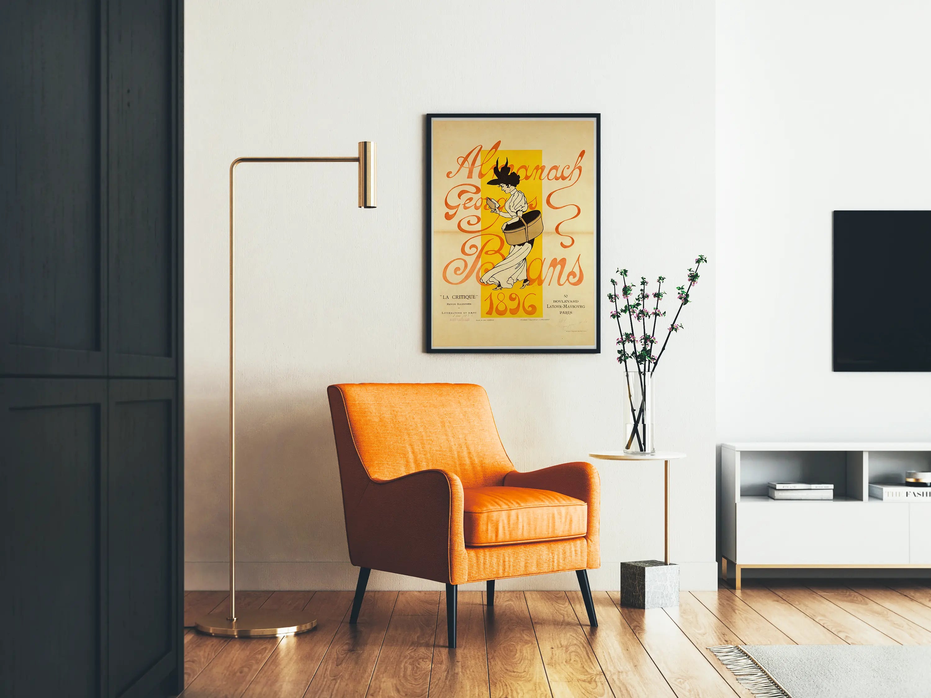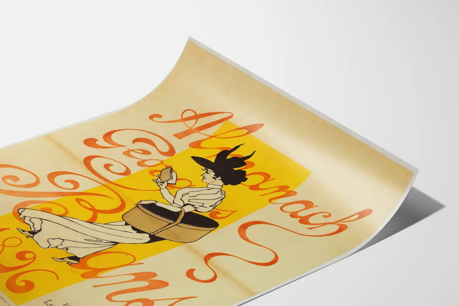 Poznaj tę vintage plakat ilustrujący Almanach Georges Bans z 1896 roku, ikoniczne dzieło typograficzne i graficzne końca XIX wieku. Ten stary plakat przedstawia elegancką młodą kobietę w stroju z epoki, przewracającą strony książki, na tle jaskrawożółtym, które podkreśla postać centralną. Tekst w czerwonych kursywach wyraźnie ogłasza almanach z napisem „La Critique, Revue Illustrée de Littérature et d'Art” oraz paryski adres „50 Boulevard Latour-Maubourg”. Podpisany przez Léona Lebègue’a za rysunek i uzupełniony wycinankami typograficznymi S. Beaumont, ten plakat odzwierciedla charakterystyczny styl artystyczny dekoracyjnego stylu tamtej epoki. Ta unikalna sztuka doskonale pasuje do wyrafinowanej dekoracji ściennej, czy to jako ozdoba w salonie, bibliotece czy przestrzeni poświęconej kulturze i literaturze. Dobór kolorów, elegancka typografia i starannie wykonana grafika czynią z niego element dekoracyjny, który z wdziękiem ozdobi każde wnętrze. Podaruj swoim ścianom ten oryginalny i ikoniczny plakat, świadectwo dziedzictwa kulturowego i artystycznego Francji z epoki Belle Époque. Ten vintage plakat to zaproszenie do ponownego odkrycia fragmentu historii literackiej i artystycznej, idealny dla miłośników sztuki dawnej i pasjonatów dekoracji ściennych z epoki.