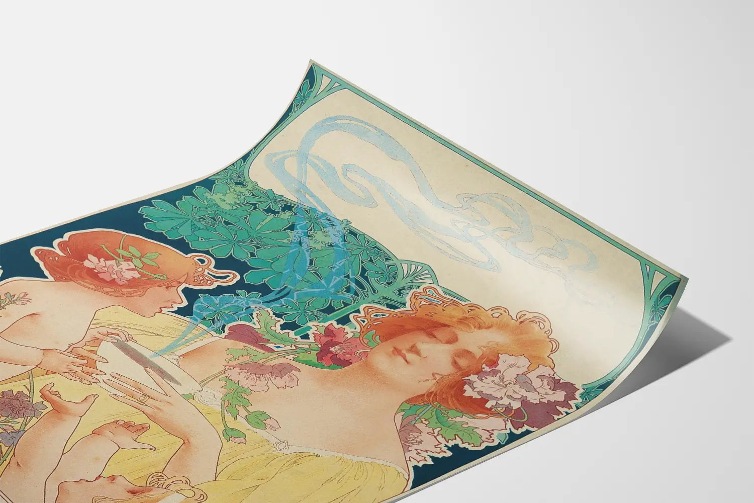 Ten vintage'owy plakat wyróżnia się delikatnymi pastelowymi barwami, w których dominują odcienie zieleni, żółci i różu, tworząc atmosferę zarówno spokojną, jak i poetycką. Jego płynny, ozdobny styl graficzny czyni go prawdziwym dziełem sztuki do zawieszenia w kuchni, jadalni lub specjalistycznym sklepie, dodając eleganckiego i historycznego akcentu Twojej aranżacji wnętrza.