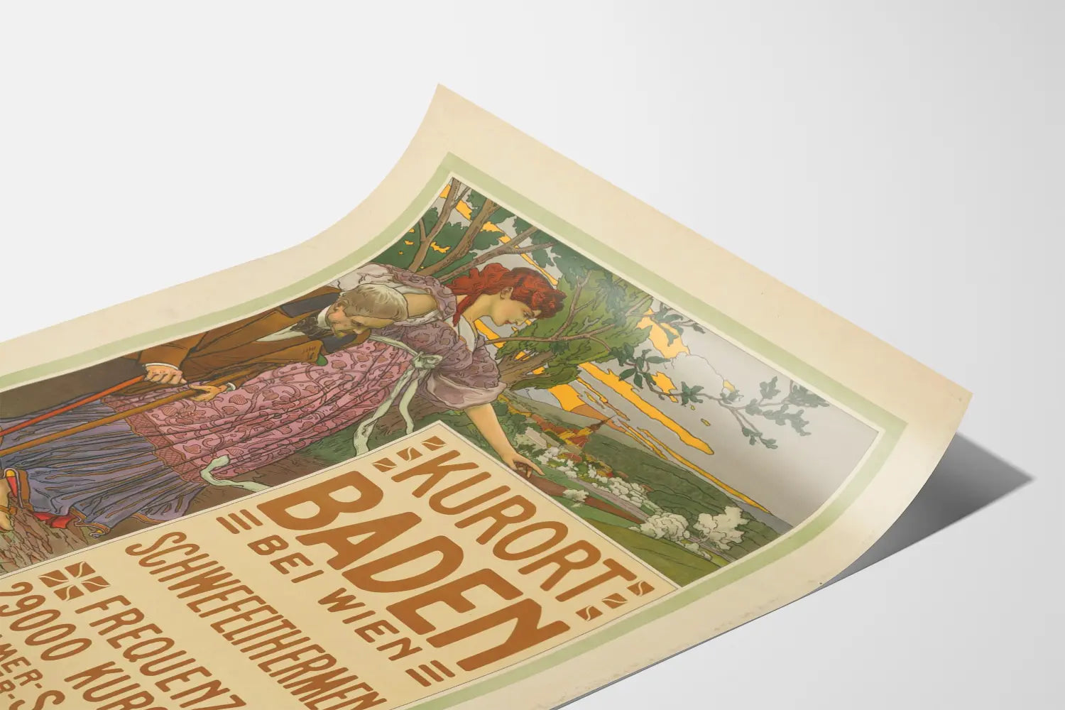 Plakat secesyjny vintage Kurort Baden niedaleko Wiednia