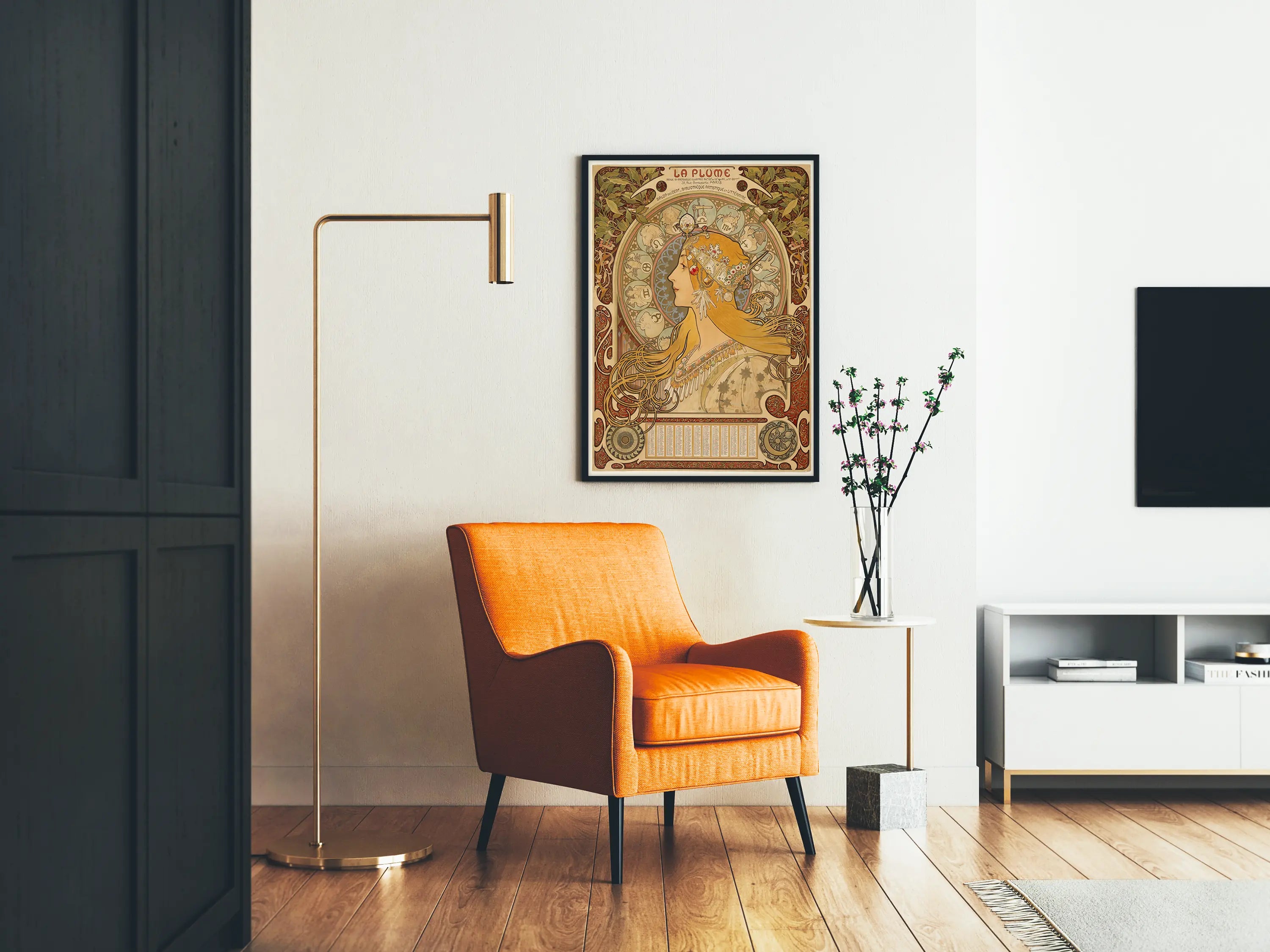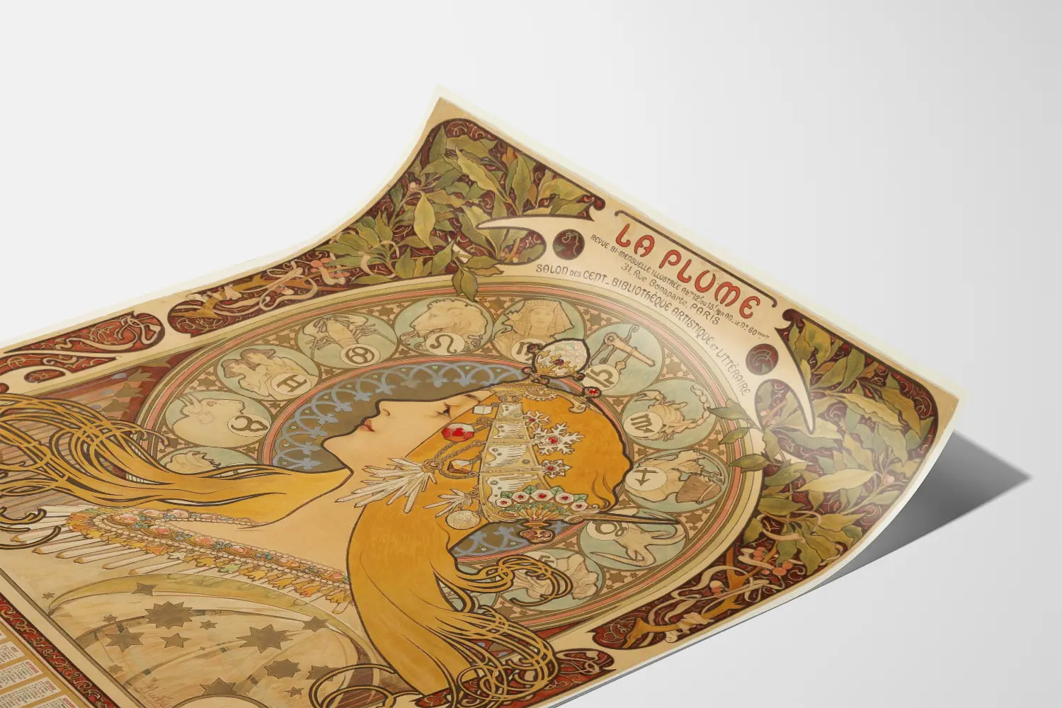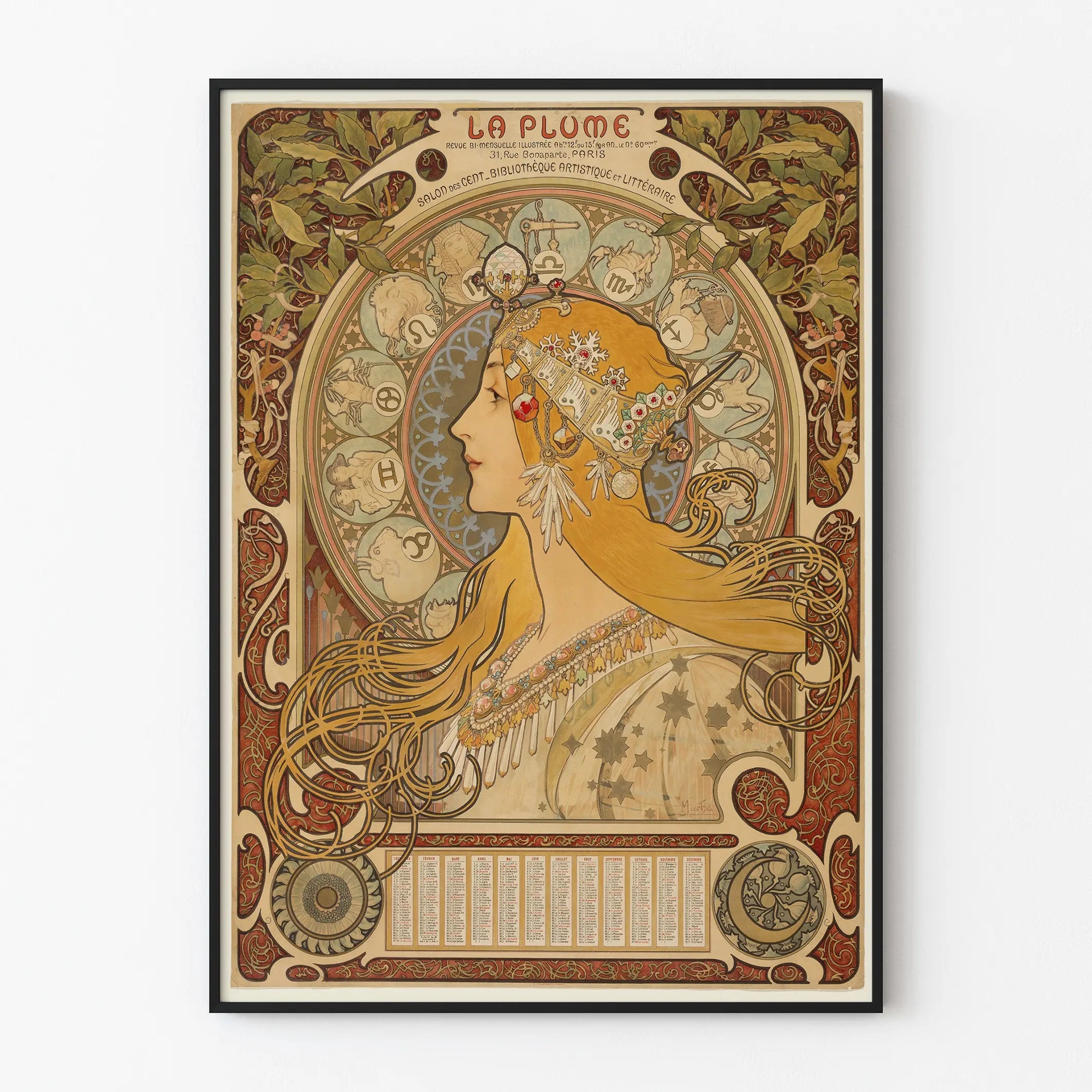 Plakat z secesyjnym zodiakiem La Plume z portretem kobiety