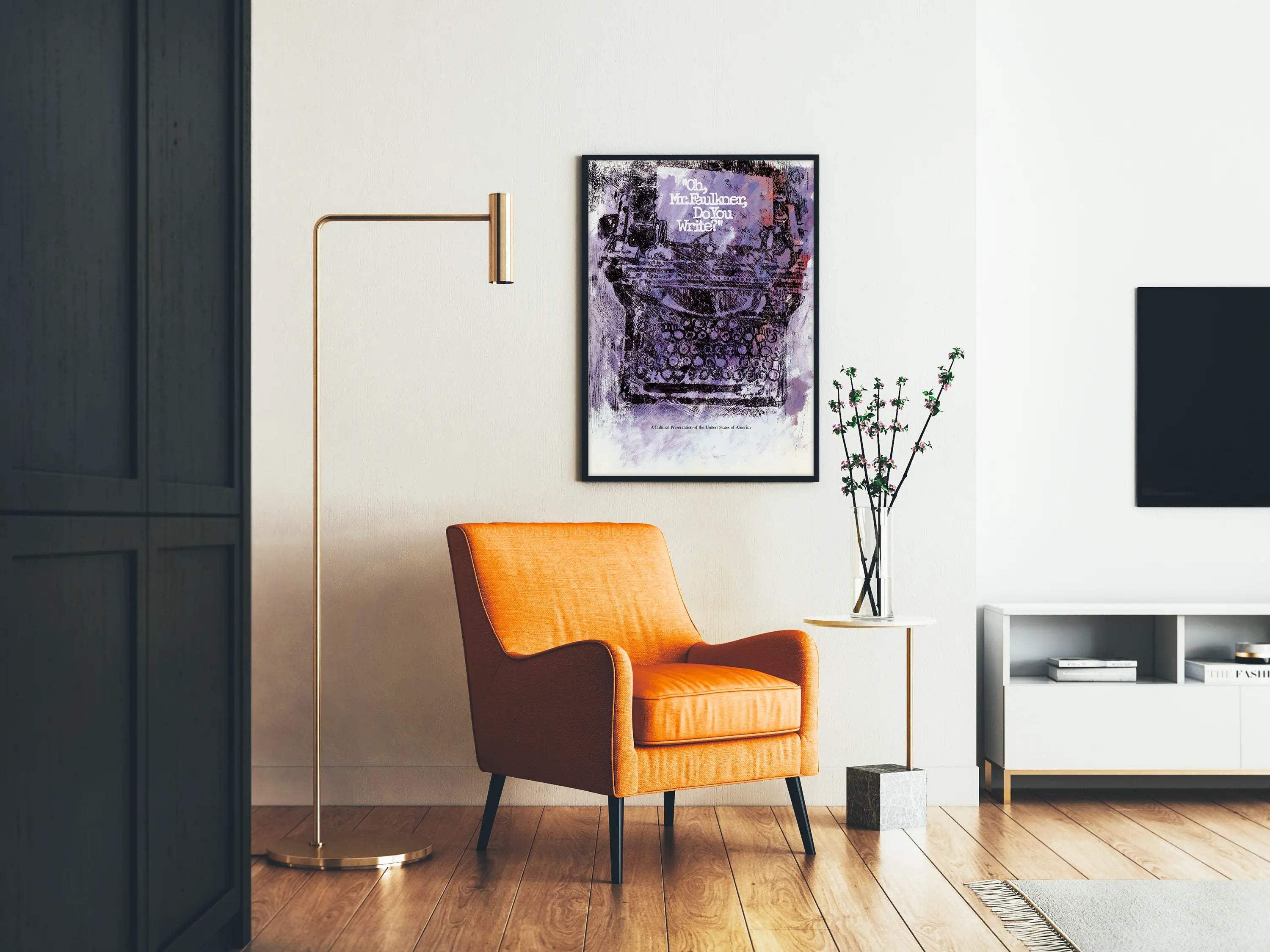 Ta oryginalna plakatowa dekoracja ścienna przedstawia ilustrację inspirowaną starą maszyną do pisania, dominującą w odcieniach fioletu i czerni. Dzieło w centrum zawiera napis „Oh, Mr. Faulkner, Do You Write?” w białych literach, nadając tej ozdobie ściennej zarówno charakter literacki, jak i nostalgiczną atmosferę. Dobór kolorów, łączący odcienie lawendy, fioletu i czerni, tworzy artystyczny i teksturowany efekt wizualny, przypominający styl abstrakcyjnego malarstwa lub ryciny. Ta plakieta jest idealna dla miłośników literatury, pisania lub po prostu dla tych, którzy chcą dodać retro i kulturalny akcent do swojego wnętrza. Doskonale wpasuje się w salon, biuro lub bibliotekę, wprowadzając inspirującą i twórczą atmosferę. Jako element dekoracji ściennej, ten plakat łączy mocny przekaz tekstowy z estetyką wizualną, która pobudza wyobraźnię. Może być również zestawiany z innymi ozdobami na temat literatury lub sztuk graficznych. Ten obraz na ścianę będzie eleganckim wyborem do personalizacji Twoich ścian, ukazując siłę słów i urok starej maszyny do pisania, ponadczasowego symbolu tradycyjnego pisarstwa.