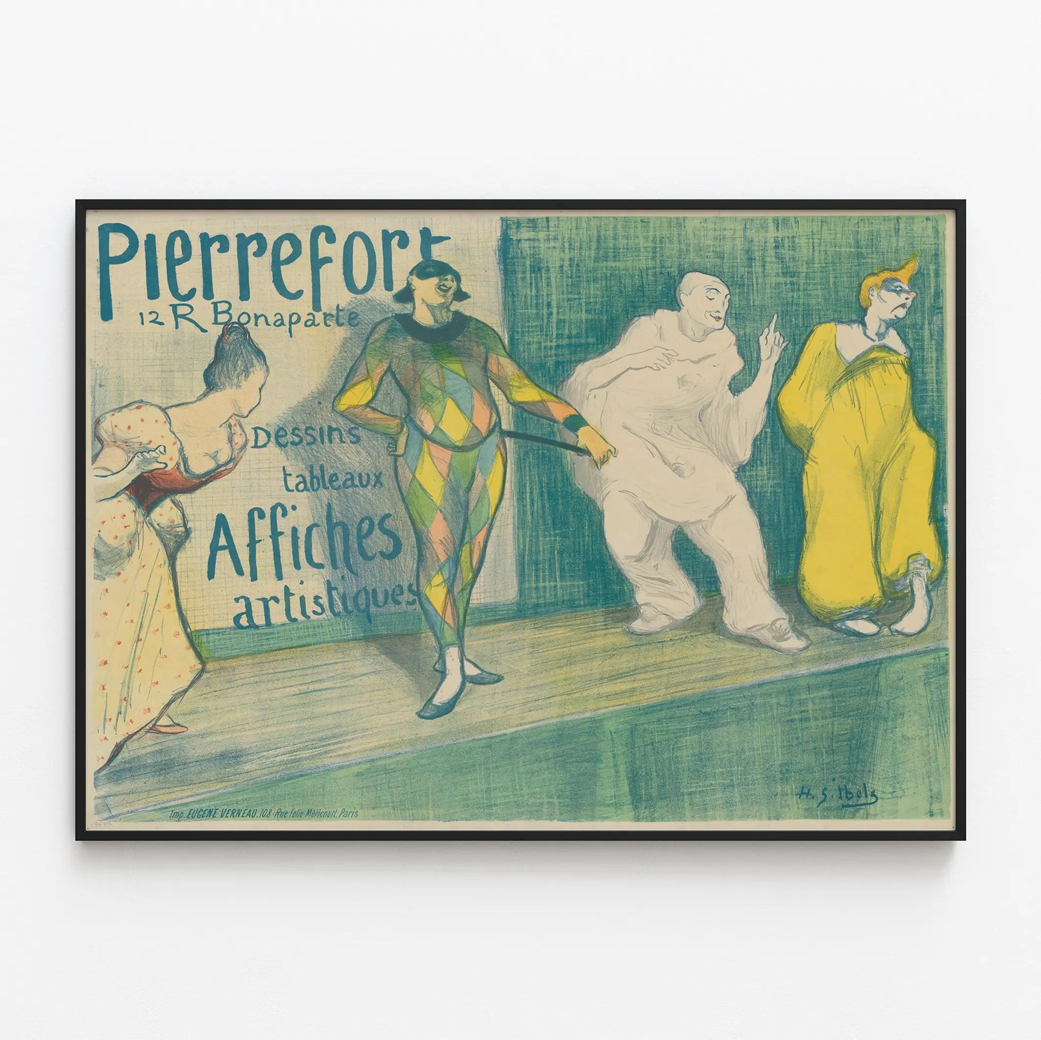 Poznaj tę artystyczną plakatową reprodukcję vintage zatytułowaną „Pierrefort”, przedstawiającą scenę teatralną z czterema postaciami w różnorodnych kostiumach, w tym kolorowym Arlekinem i kilkoma postaciami przebranymi w odmienny sposób, na teksturowanym zielonym tle. Ten plakat promuje rysunki, obrazy i plakaty artystyczne dostępne pod numerem 12 na ulicy Bonaparte. Plakat wyróżnia się precyzyjnym i szczegółowym stylem graficznym, łączącym rysunek konturowy z delikatnymi kolorami, które dodadzą elegancji i kultury Twojej dekoracji ściennej. Idealny dla miłośników sztuki retro lub dekoracji inspirowanej teatrem i sztukami graficznymi, ten obraz na ścianę oddaje lekką i wyrazistą atmosferę, doskonałą do ozdoby salonu, biura lub przestrzeni twórczej. Dzięki harmonijnym tonacjom, dominującym zieleniami, żółciami i ochrami, plakat łatwo wkomponuje się w różne style wnętrz – zarówno tradycyjne, jak i nowoczesne. Dzieło łączy humor i wyrafinowanie, ukazując dynamiczne postaci i starannie wykonane kostiumy, czyniąc ten plakat unikalnym elementem dla tych, którzy chcą spersonalizować swoją dekorację ścienną oryginalnym, artystycznym akcentem. Produkt ten doskonale nadaje się do oprawienia i wyeksponowania na ścianie lub jako dekoracyjny plakat dla pasjonatów rysunków i obrazów z epoki. Wprowadź teatralną i artystyczną atmosferę do swojego wnętrza z plakatem Pierrefort, estetycznym wyborem celebrującym bogactwo rysunku i plakatu artystycznego.
