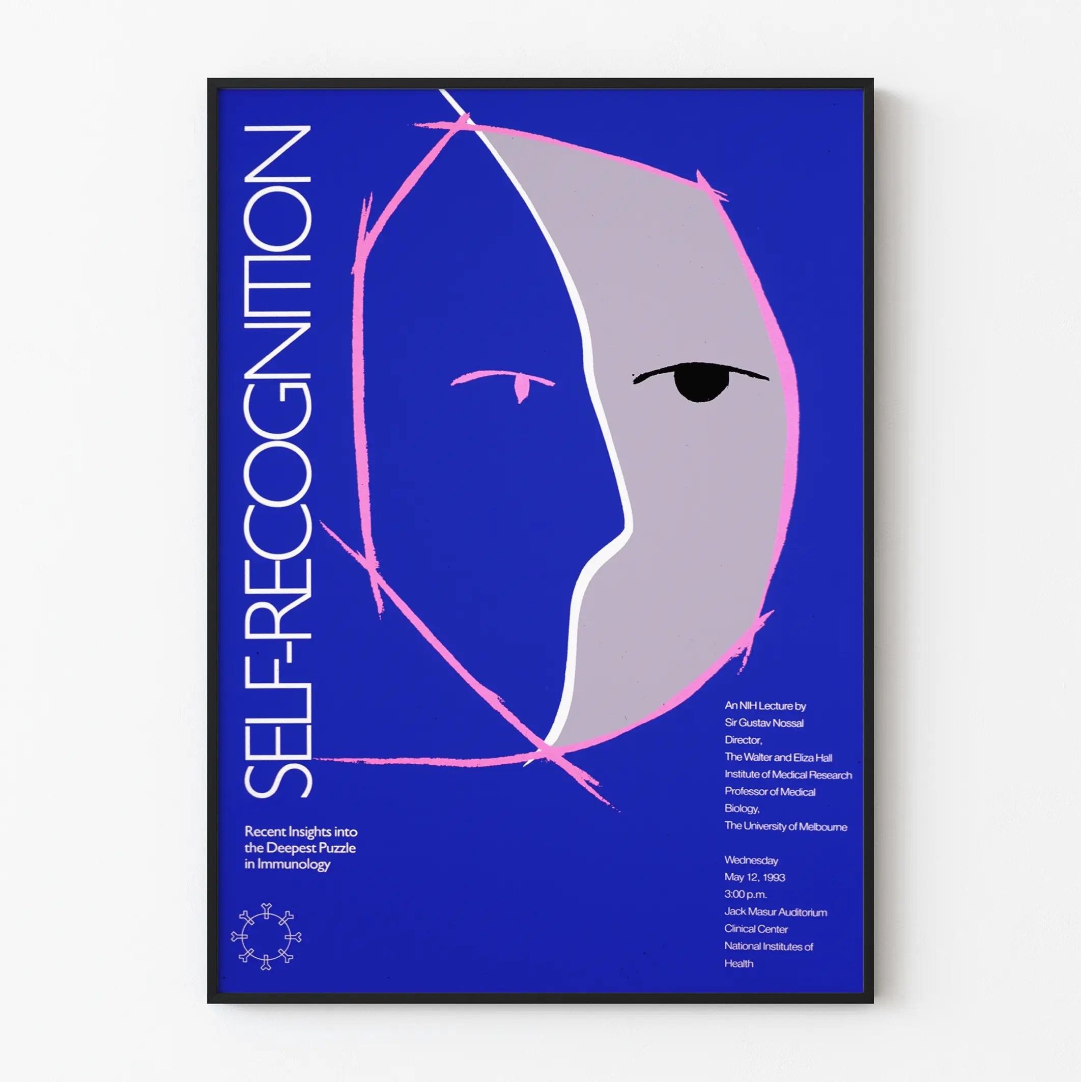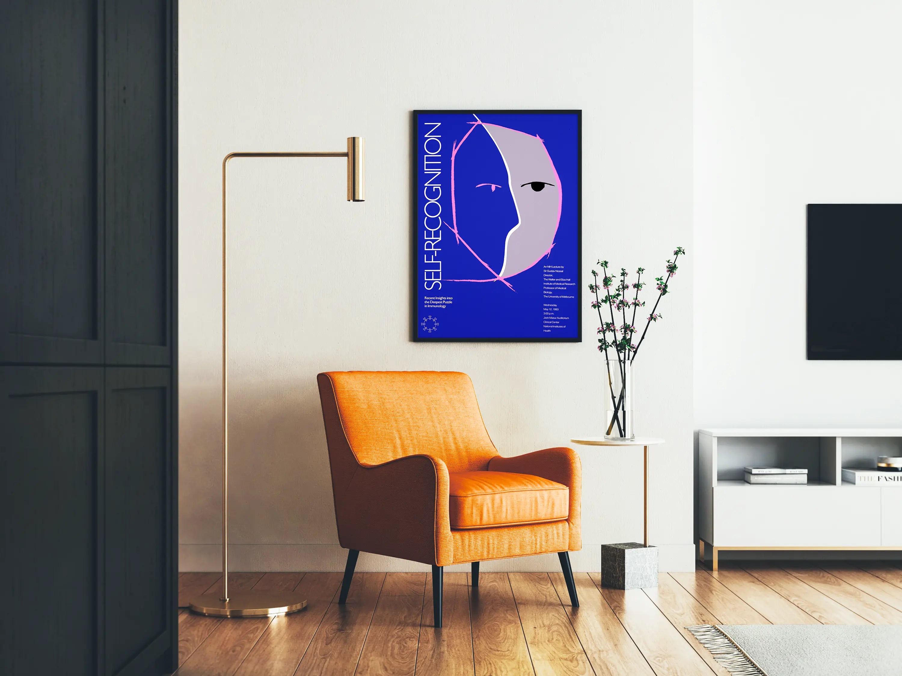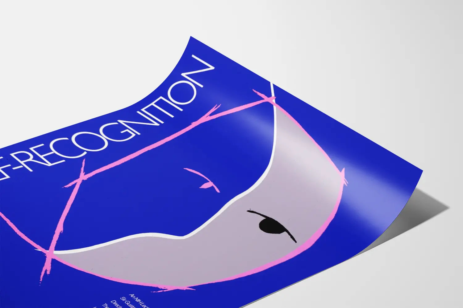 Plakat artystyczny Self-Recognition w kolorze niebieskim i różowym do dekoracji ścian