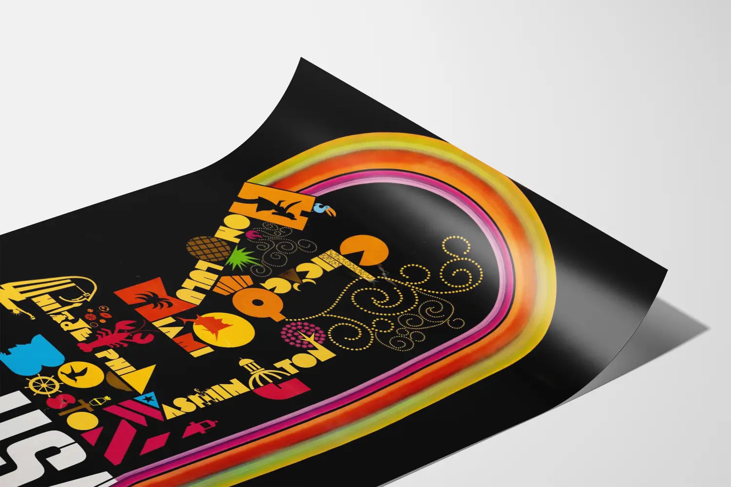 Wyróżnienie tego plakatu ściennego to wybór dekoracji łączącej sztukę i typografię, jednocześnie celebrując wizualne bogactwo USA poprzez oryginalny i designerski plakat. Jest również idealny dla miłośników podróży, pasjonatów grafiki lub każdego, kto chce spersonalizować swoją przestrzeń kolorowym i stylowym elementem na ścianę.