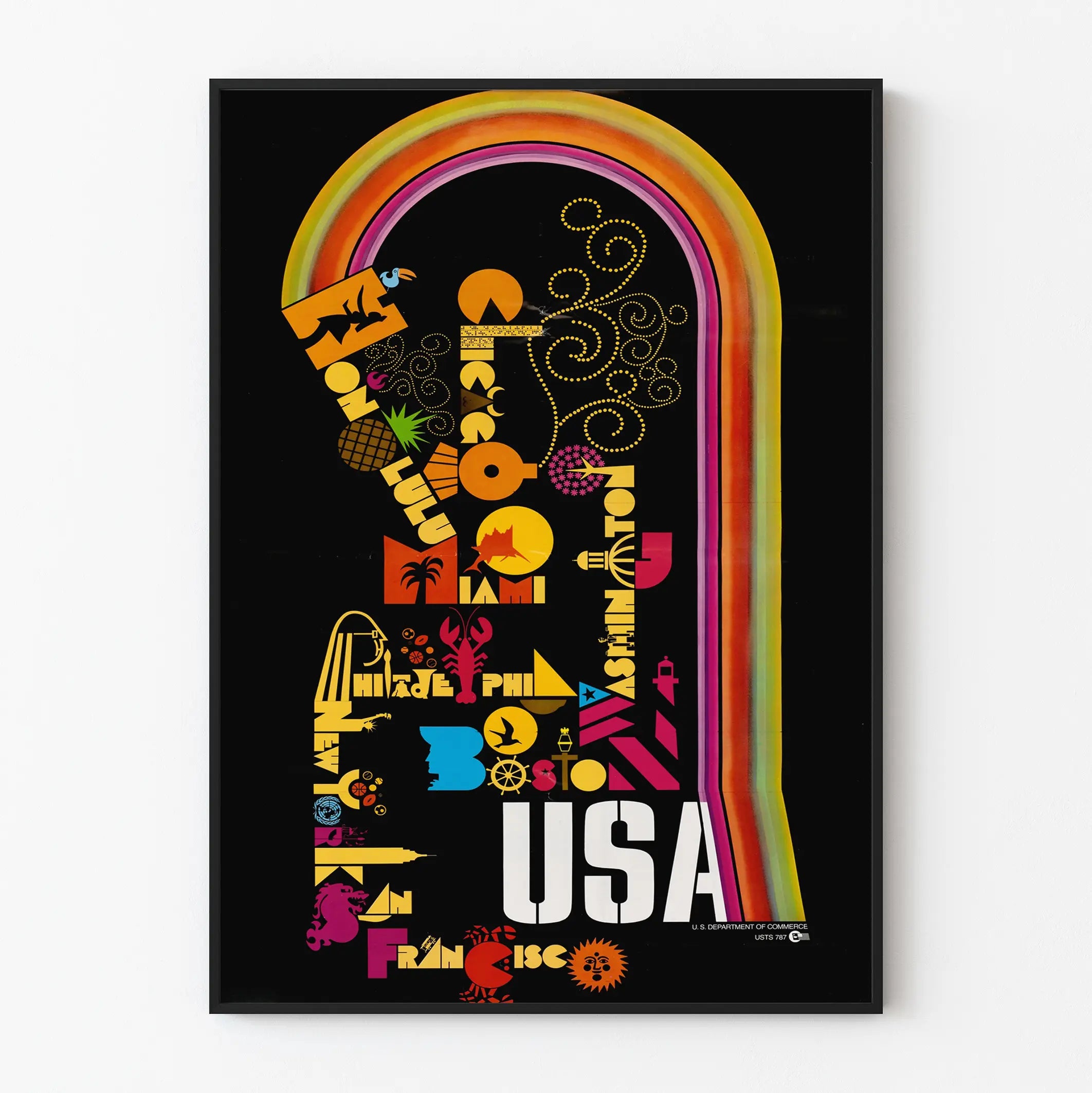 Kolorowy artystyczny plakat typograficzny z USA do dekoracji ścian