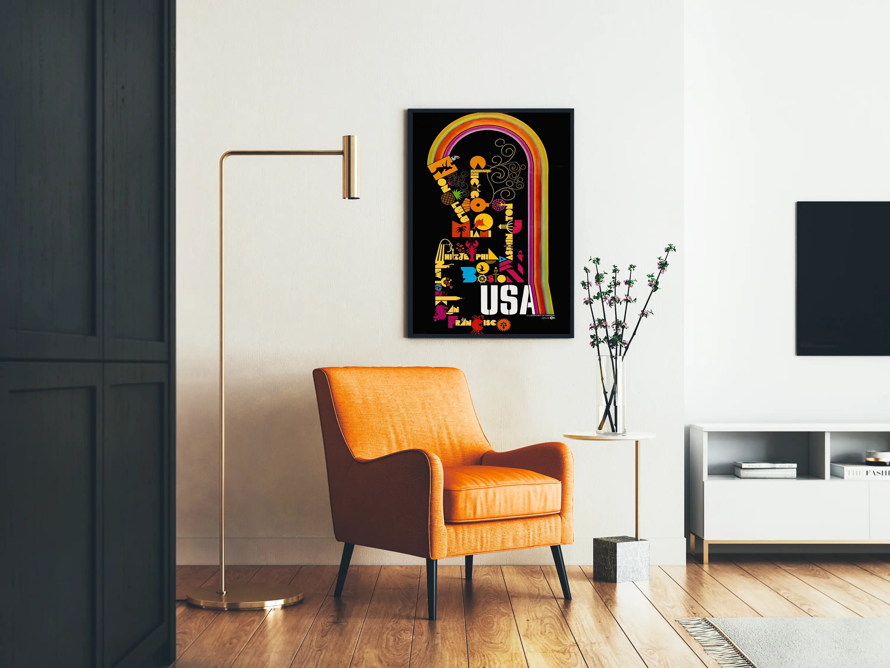 Dodaj swoim ścianom nowy, graficzny akcent dzięki temu typograficznemu plakatowi USA, który szybko stanie się centralnym elementem Twojej dekoracji wnętrza.
