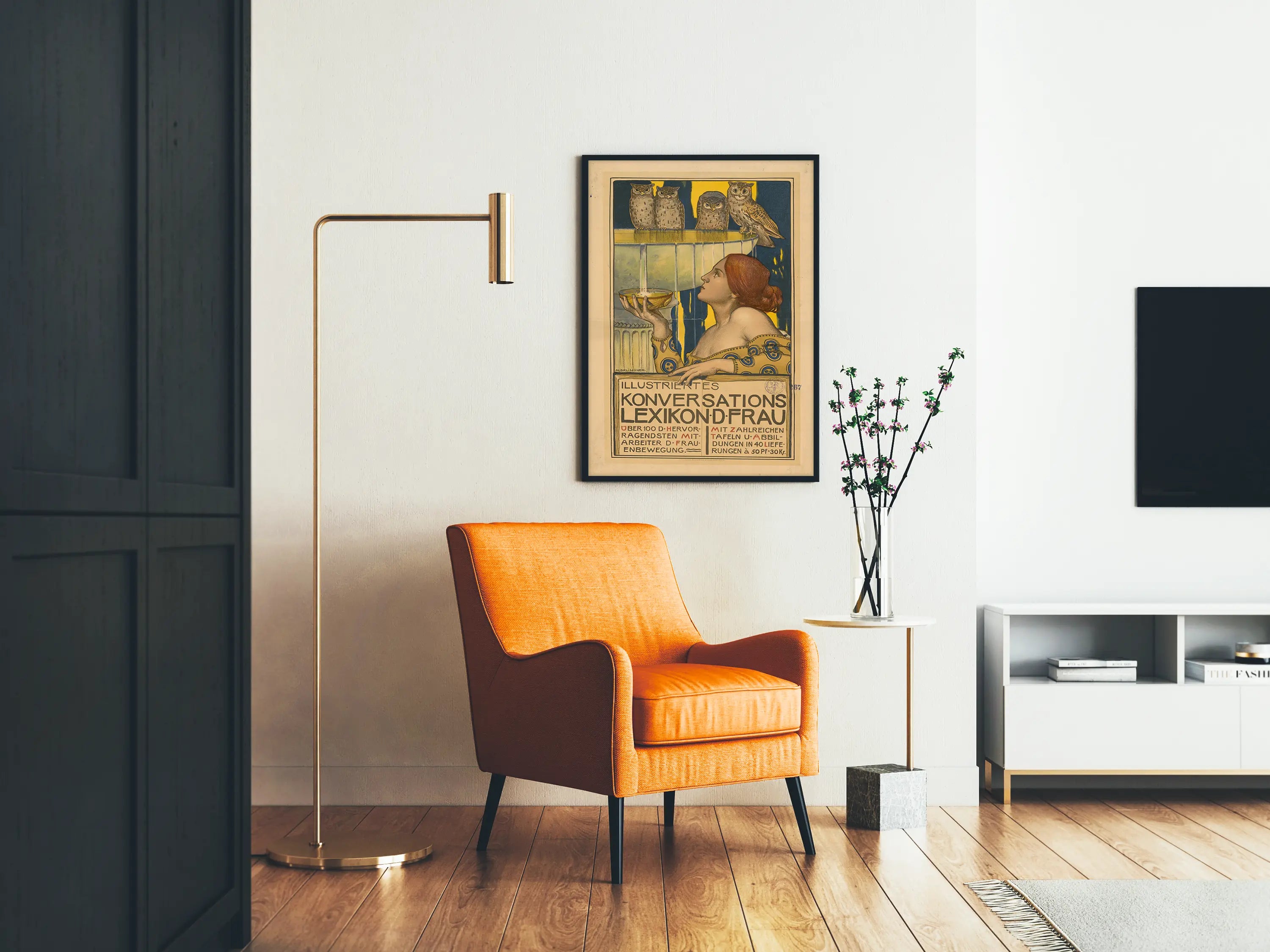 Plakat podkreśla także tekst w starożytnych znakach, który wzmacnia estetykę retro, doskonały jako element dekoracyjny w salonie, bibliotece lub biurze. Jego ornamentowy styl nawiązuje do sztuki secesji, cenionej za elegancję i motywy naturalne.