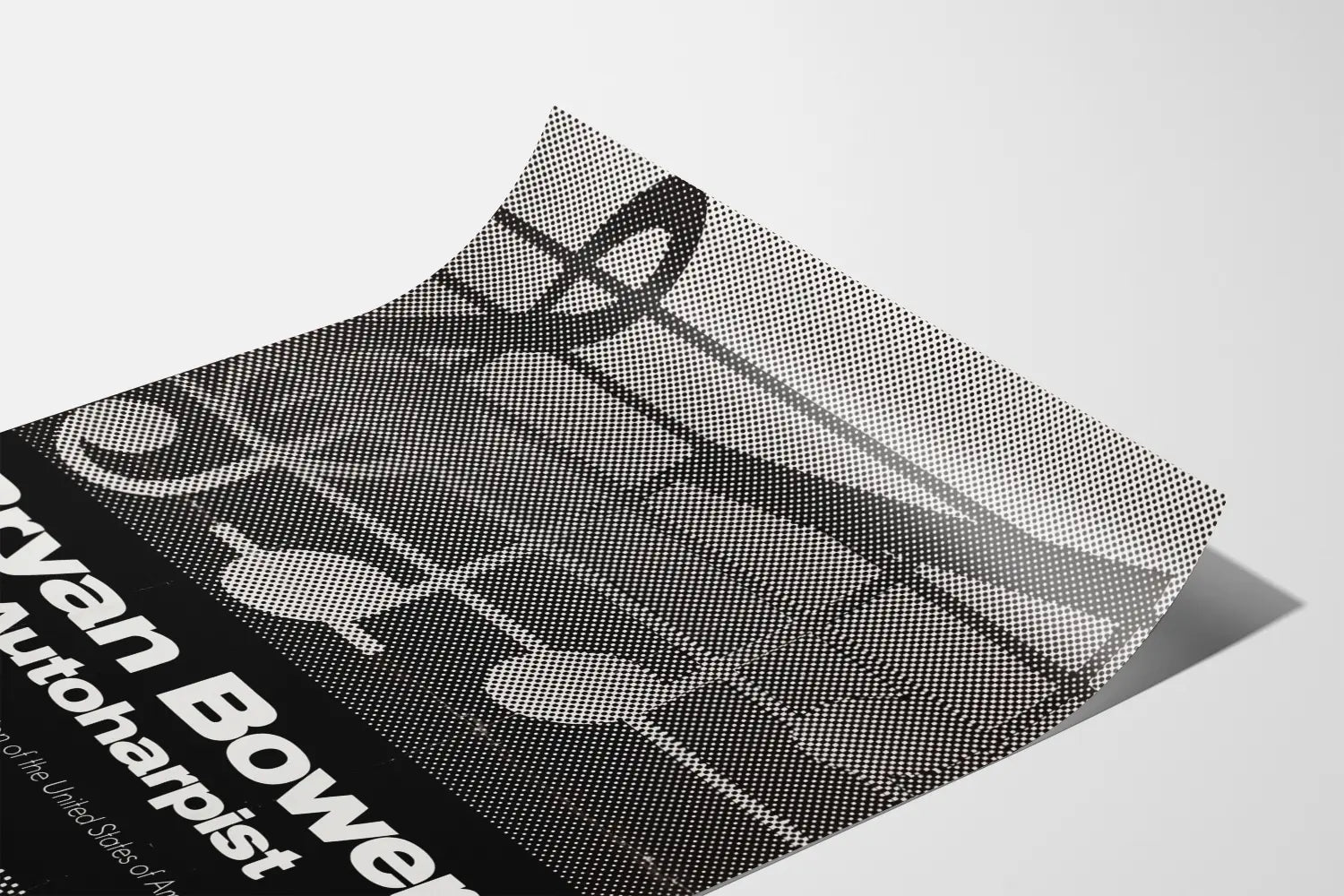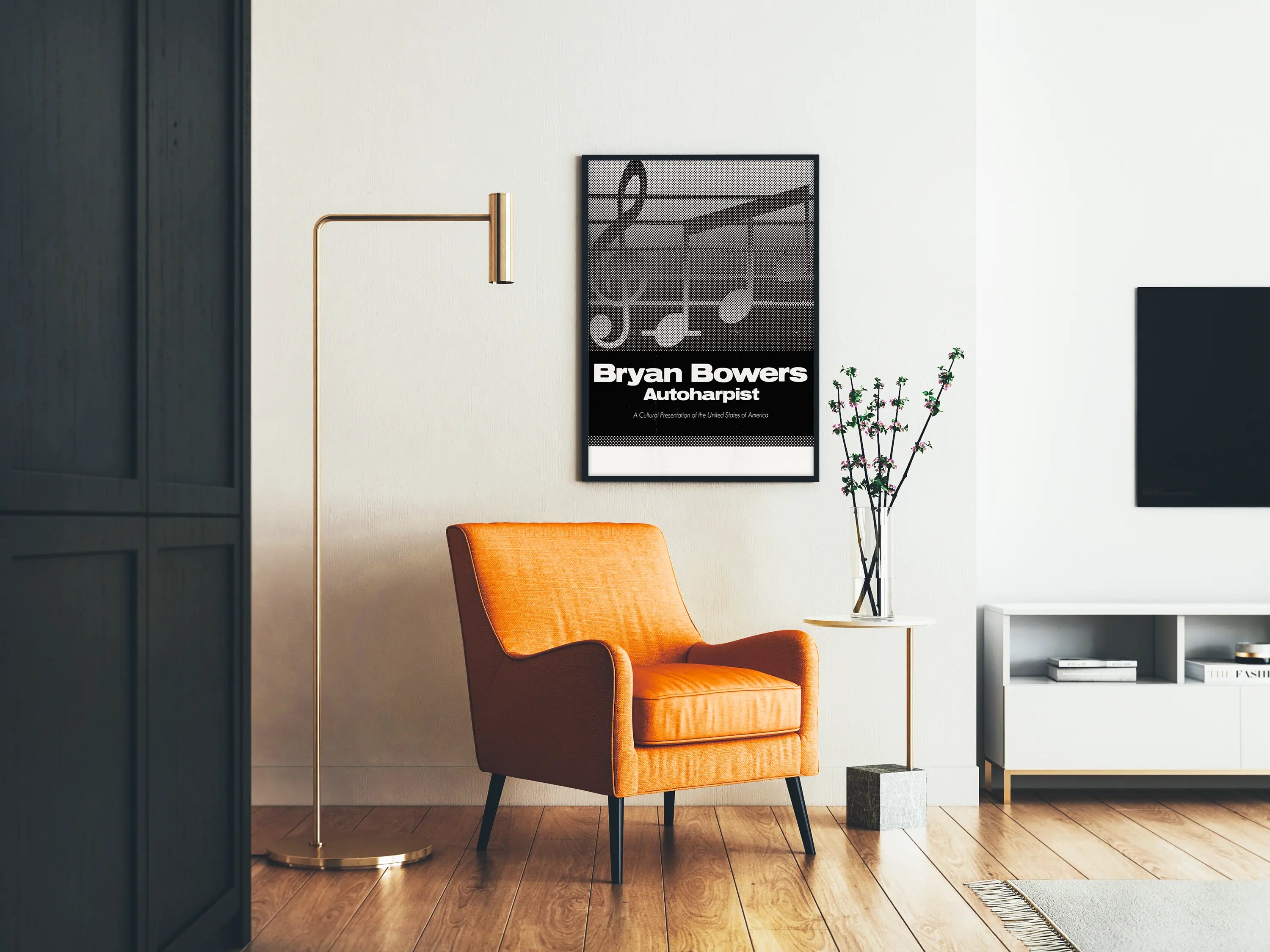 Ta plakat ścienny przedstawia Bryan Bowersa, grającego na autoharpie, w stylu graficznym vintage w czerni i bieli. Projekt podkreśla stylizowane nuty muzyczne na pięciolinii oraz imię artysty w pogrubionych literach, co zapewnia silny kontrast i wyrazistą dynamikę wizualną. Ta dekoracja ścienna jest idealna dla miłośników muzyki i osób ceniących estetykę retro. Jej monochromatyczna atmosfera doskonale pasuje do różnych przestrzeni, niezależnie od tego, czy jest to salon, biuro czy sala muzyczna. Ten plakat muzyczny harmonijnie wpisuje się w wystrój o neutralnych i minimalistycznych tonach, dodając jednocześnie element kulturowy i artystyczny. Z dyskretnym przesłaniem „A Cultural Presentation of the United States of America” ta plakat wywołuje poczucie autentyczności i oddaje hołd tradycyjnej muzyce amerykańskiej, czyniąc go zarówno eleganckim, jak i znaczącym elementem dekoracyjnym. Niezależnie od tego, czy jesteś fanem instrumentów akustycznych, czy szukasz oryginalnego elementu graficznego, ten obraz na ścianę wniesie do Twojego wnętrza muzyczną i artystyczną atmosferę. Gra punktów na obrazie dodaje interesującą teksturę i efekt retro, który przypadnie do gustu miłośnikom grafiki. Wybierz ten plakat, aby wzbogacić swoją dekorację ścienną o element łączący muzykę i design, idealny do stworzenia kącika poświęconego kreatywności i inspiracji.