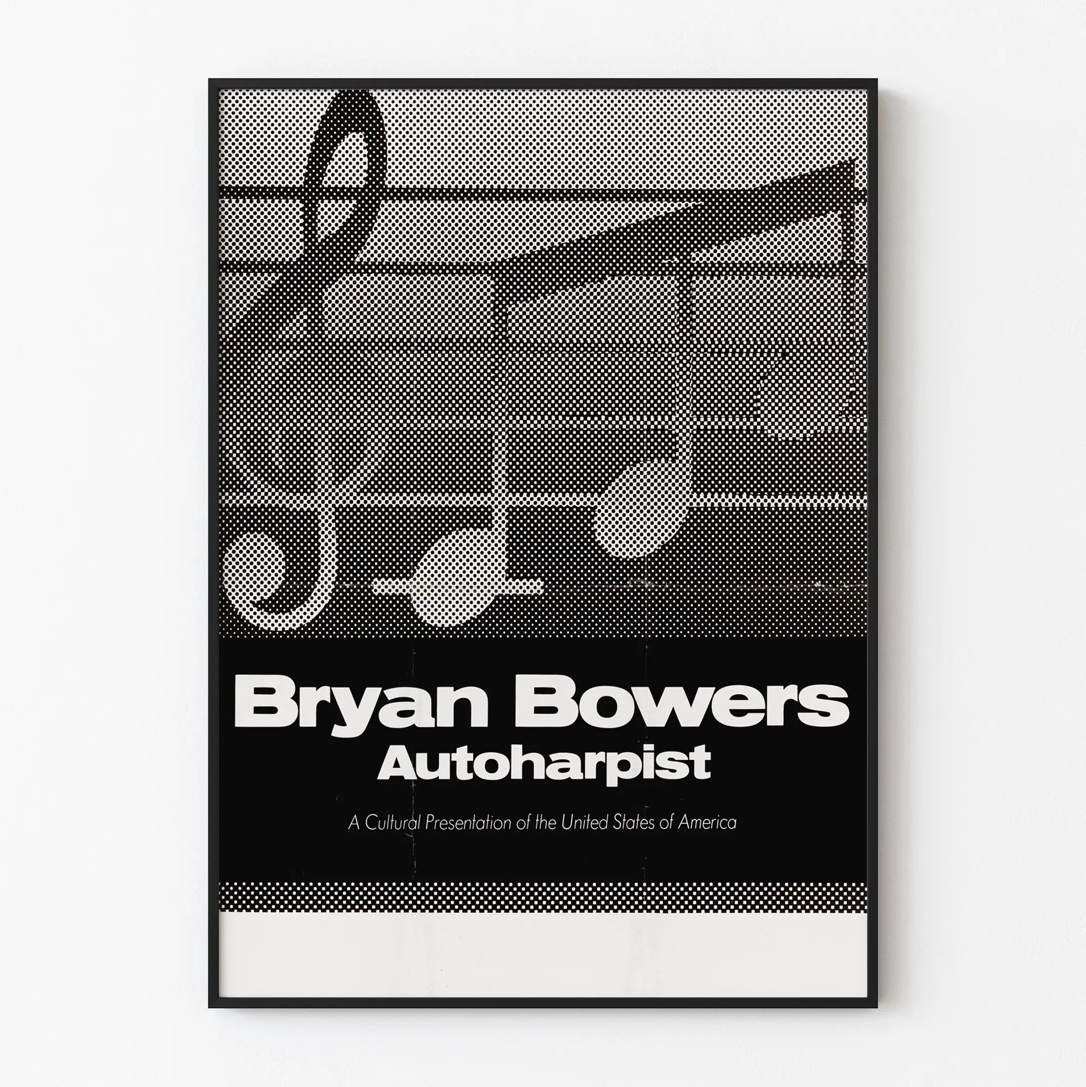 Plakat Bryana Bowersa, muzyka vintage, autoharpista