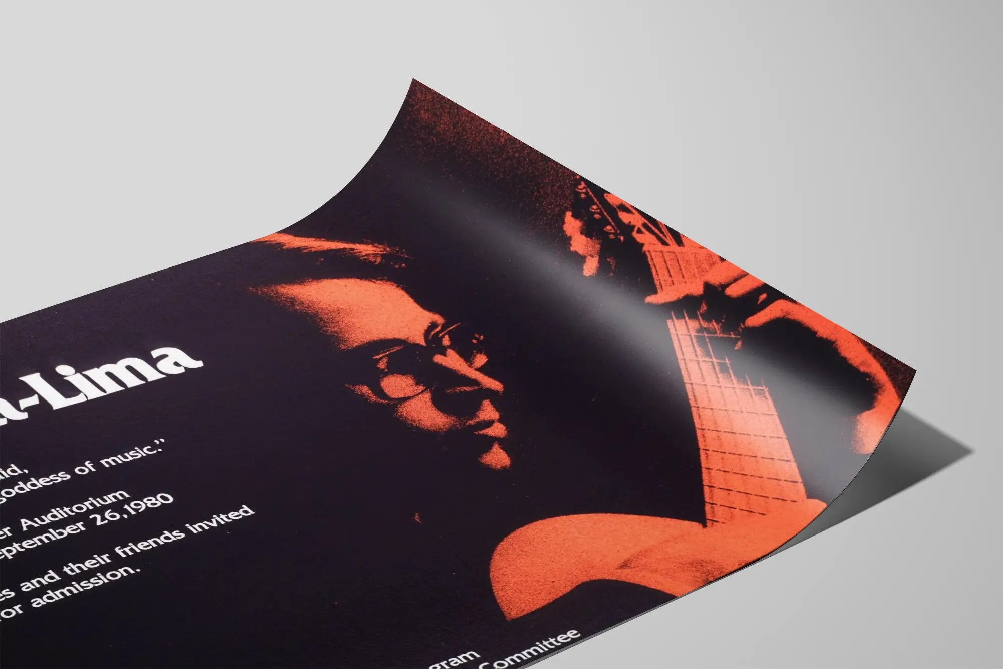Ta vintage plakat przedstawia Carlosa Barbosę-Limę, młodego brazylijskiego gitarzystę, w nastroju jednocześnie stonowanym i artystycznym. Dominujące ciemne odcienie podkreślają kontrast między białymi tekstami a obrazem w odcieniach czerwono-pomarańczowych, ukazującym artystę grającego na gitarze. Doskonale nadający się jako dekoracja ścienna, ten plakat nawiązuje do świata muzyki klasycznej i brazylijskiej, skierowany jest do miłośników gitary i pasjonatów kultury muzycznej. Tekst podkreśla wirtuozerię muzyka, przywołując pochlebną cytat od Andrésa Segovii, który uważa Carlosa za wyjątkowy talent zainspirowany boginią muzyki. Plakat zawiera także szczegóły wydarzenia, które miało miejsce w auli Centrum Klinicznego NIH, tworząc historyczne i autentyczne powiązanie ze światem muzyki na żywo. Niezależnie od tego, czy zawisł w salonie, sali muzycznej czy studiu, ta dekoracja ścienna wnosi odrobinę elegancji i oddaje hołd brazylijskiemu gitarzyście. Jasny i graficzny układ, połączony z uderzającym obrazem gitarzysty w trakcie gry, czyni z niego oryginalny i inspirujący element dekoracyjny. Kolekcjonerzy plakatów muzycznych lub pasjonaci gitary znajdą w tym plakacie unikalny i sugestywny element do personalizacji przestrzeni wewnętrznej, jednocześnie oddając hołd uznanemu artyście.