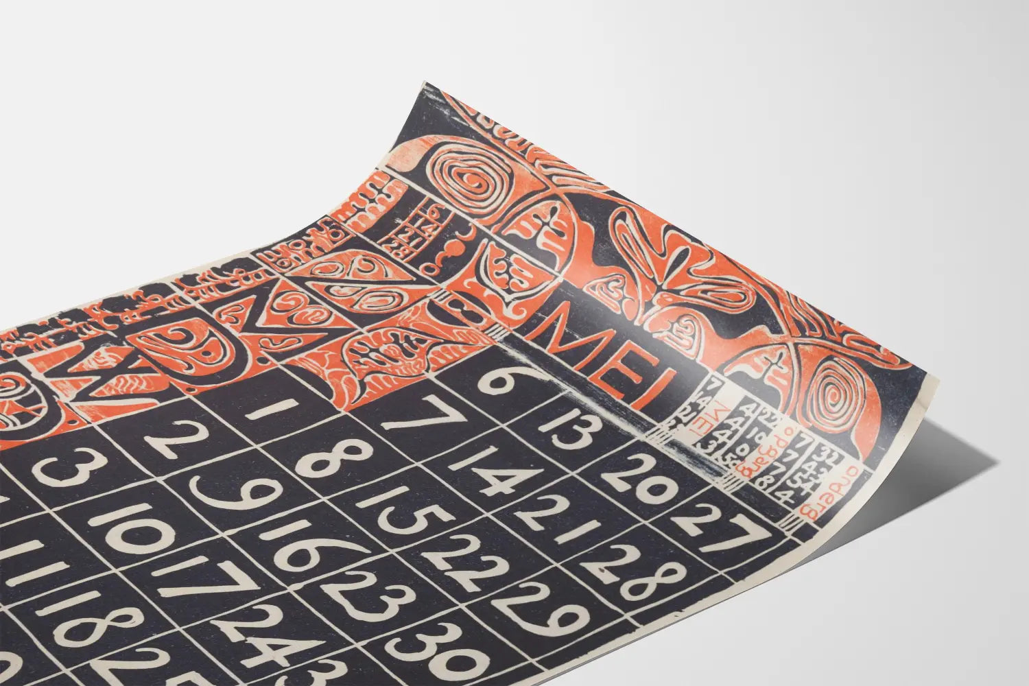 Odkryj tę unikalną i oryginalną plakat przedstawiający kalendarz na miesiąc maj, datowany na rok 1900. Ta vintage'owa dekoracja ścienna charakteryzuje się graficznym i kolorowym wzorem, łączącym dominujące odcienie czerni, pomarańczowej czerwieni oraz delikatne akcenty jasnej zieleni. Każda kratka kalendarza jest starannie narysowana, z ręcznie pisanymi cyframi w stylu typograficznym z epoki, co nadaje tej ściennej ozdobie wyjątkową autentyczność.