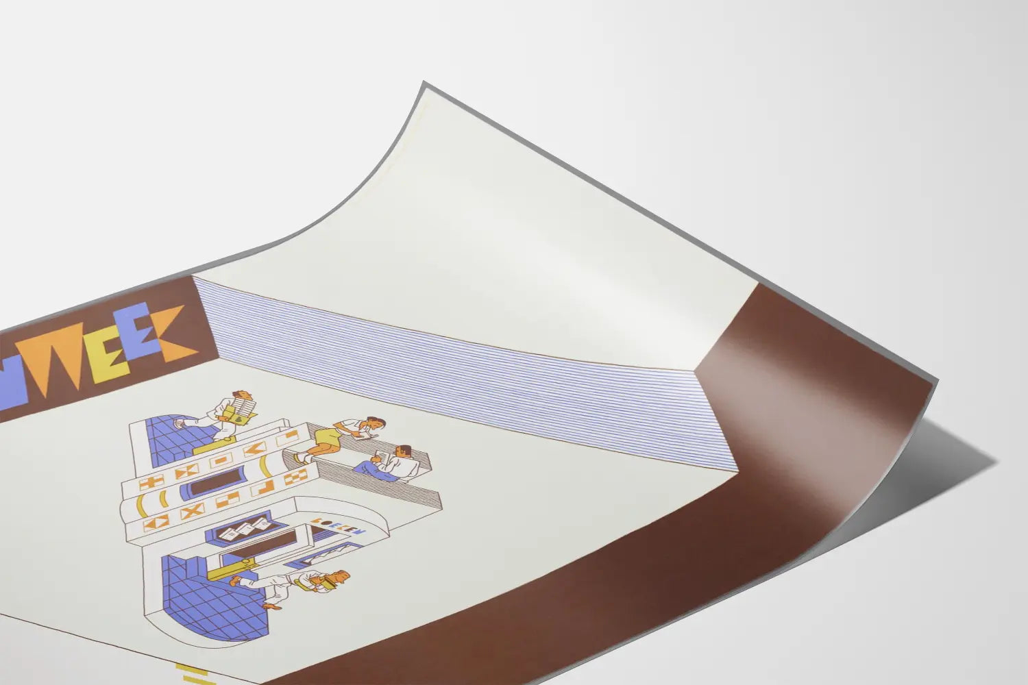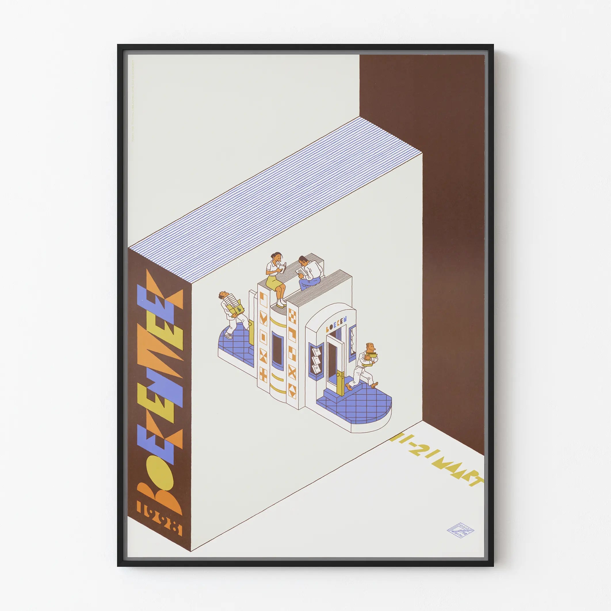Ten plakat z okazji Tygodnia Książki 1998 jest oryginalnym elementem dekoracji ściennej, idealnym dla miłośników czytania i sztuki graficznej. Przedstawia stylizowaną bibliotekę w formie gigantycznych książek, na której scenie pojawia się kilka postaci zatopionych w lekturze, co podkreśla znaczenie i przyjemność czytania zarówno zbiorowego, jak i indywidualnego. Grafika charakteryzuje się perspektywą izometryczną, nadającą kompozycji efekt trójwymiarowości. Użyte kolory są stonowane i eleganckie, z odcieniami brązu, niebieskiego i ochry, które tworzą ciepłą i przyjazną atmosferę. Plakat wyróżnia się prostym, a zarazem wyrafinowanym designem, skupiając się na formach geometrycznych i odważnej typografii, z napisem „Tydzień Książki” w kolorowych literach na grzbiecie książki oraz datami 11-21 marca umieszczonymi w prawym dolnym rogu. Ten dekoracyjny element ścienny doskonale pasuje do nowoczesnego wnętrza lub czytelni, wnosząc artystyczny akcent celebrujący świat książek. Niezależnie od tego, czy znajduje się w prywatnej bibliotece, biurze czy przestrzeni kulturalnej, ten plakat zachęca do literackiej ucieczki, jednocześnie dodając oryginalny, graficzny akcent do atmosfery. Każdy szczegół, od postaci po rozmiar książek, został przemyślany tak, aby podkreślić znaczenie czytania poprzez silny i sugestywny obraz. To plakat, który będzie wyróżniającym się elementem dekoracji ściennej, zarówno ze względu na estetykę, jak i symbolikę, idealny dla miłośników literatury i minimalistycznego designu.