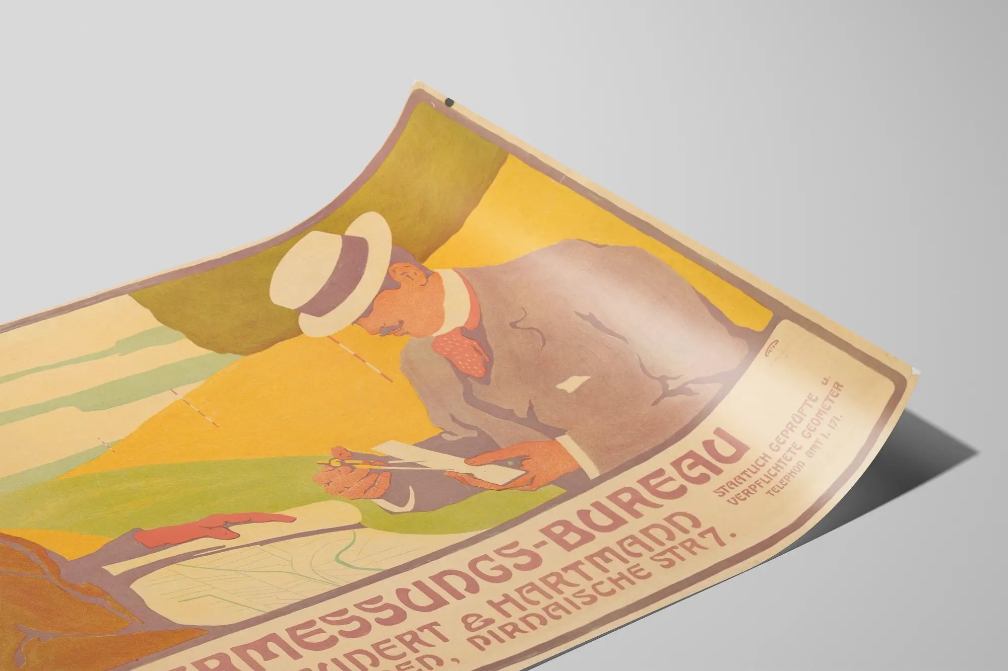 Plakat vintage Biuro Geodezyjne Grundert & Hartmann Drezno