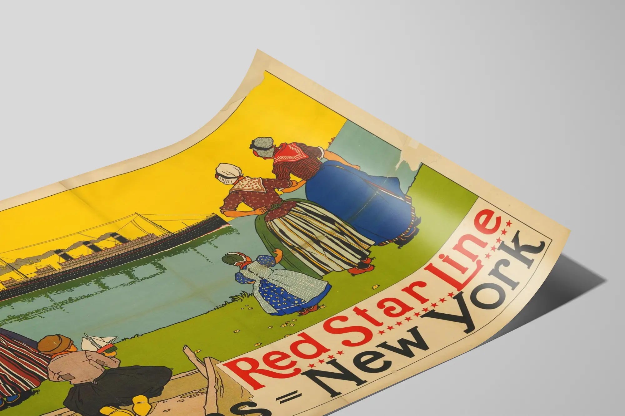 Plakat Vintage Czerwona Linia Gwiazda Antwerpii Nowy Jork - Plakat do dekoracji ścian