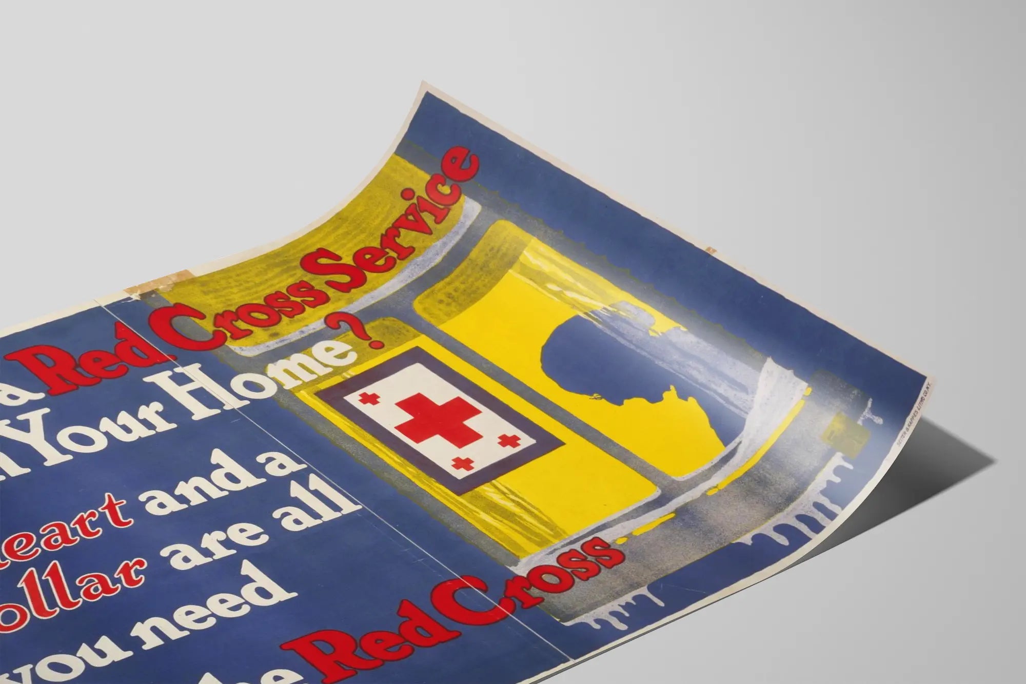 Ta retroplakat promujący usługę Czerwonego Krzyża to unikalny element dekoracji ściennej, który wniesie do Twojego wnętrza odrobinę historii i zaangażowania. Na głębokim, intensywnym niebieskim tle, przekaz w białych i czerwonych literach bezpośrednio zwraca uwagę: „Czy w Twoim domu znajduje się Flaga Usług Czerwonego Krzyża?” po którym następuje wezwanie do działania przypominające, że wystarczy „serce i dolar”, aby dołączyć do Czerwonego Krzyża. Projekt graficzny wyróżnia się żółtym, rozświetlonym oknem, w którym pojawia się sylwetka kontemplującej postaci ludzkiej, towarzysząca fladze służbowej Czerwonego Krzyża, symbolowi pomocy i solidarności. Ten stary plakat zachęca do refleksji, jednocześnie ozdabiając ściany swoim wyrazistym, vintage’owym stylem. Idealny jako dekoracja ścienna w biurze, salonie lub przestrzeni poświęconej historii lub działalności charytatywnej, ten obraz tworzy ciepłą i pełną znaczenia atmosferę. Niezależnie od tego, czy jesteś kolekcjonerem historycznych plakatów, czy miłośnikiem zaangażowanej dekoracji, ten plakat jest autentycznym dziełem łączącym historię, design i humanitarny przekaz. Wprowadź do swojego wnętrza prawdziwy element centralny, pełen charakteru, idealny do personalizacji przestrzeni i jednoczesnego wywołania silnych wartości.