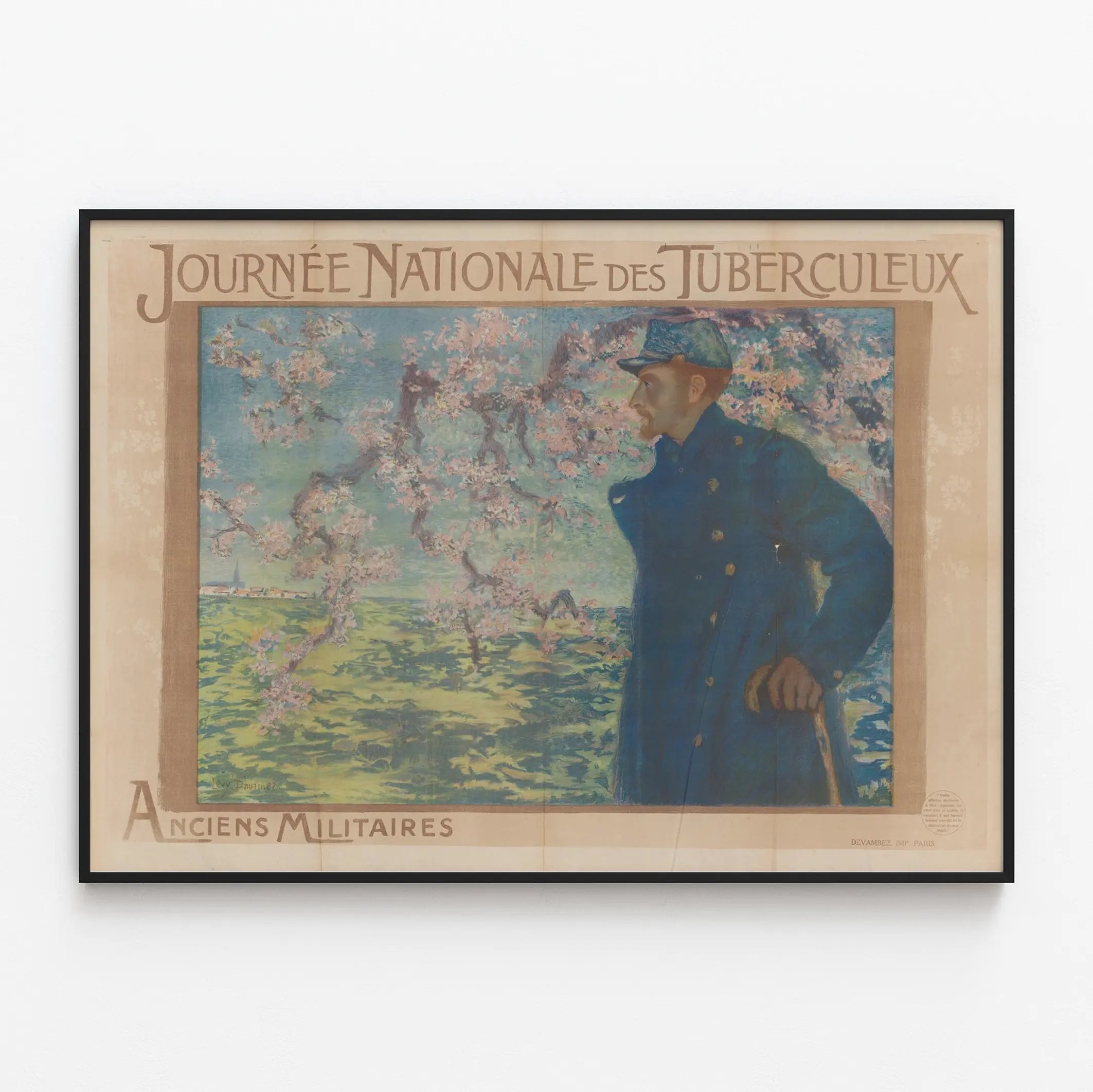Ten vintage’owy plakat, wydrukowany w Paryżu przez Devambez, wyraża uznanie dla byłych wojskowych chorych na gruźlicę, silny motyw historyczny. Starannie kaligrafowany tekst otacza obraz, podkreślając nazwę wydarzenia. Idealny dla miłośników historycznej grafiki artystycznej, ten element dekoracji ściennej może ozdobić zarówno salon, biuro, jak i bibliotekę, dodając głębi i refleksji historycznej Twojemu wnętrzu.