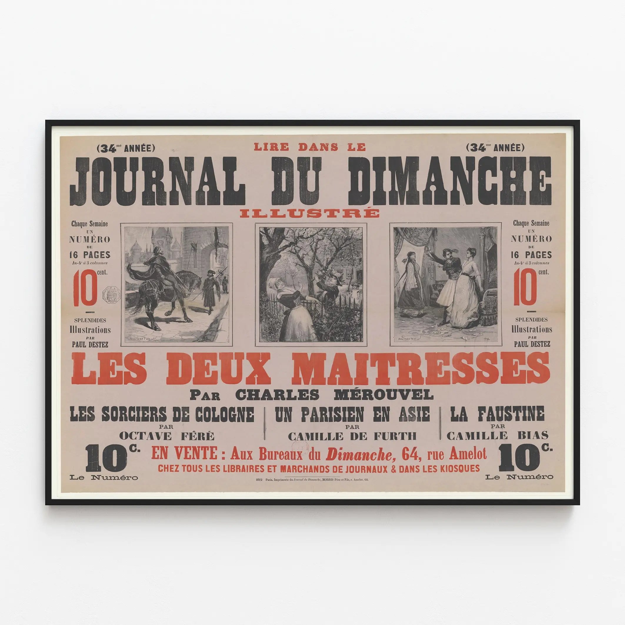 Plakat Vintage Dziennik Niedzielny Ilustrowany Les Deux Maîtresses autorstwa Charles Mérouvel