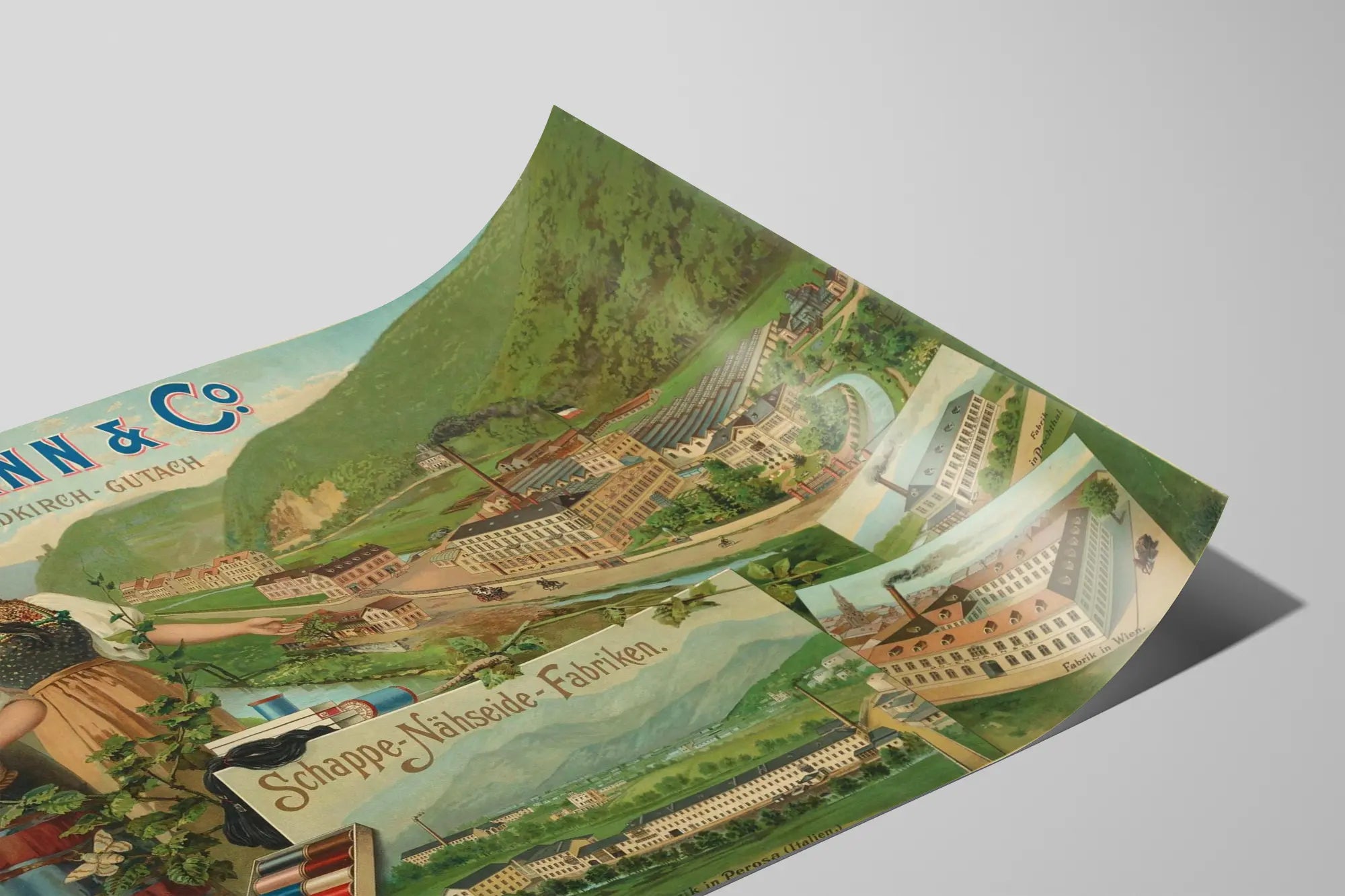Plakat vintage z fabryki Gütermann & Co - Przemysłowa dekoracja ścienna