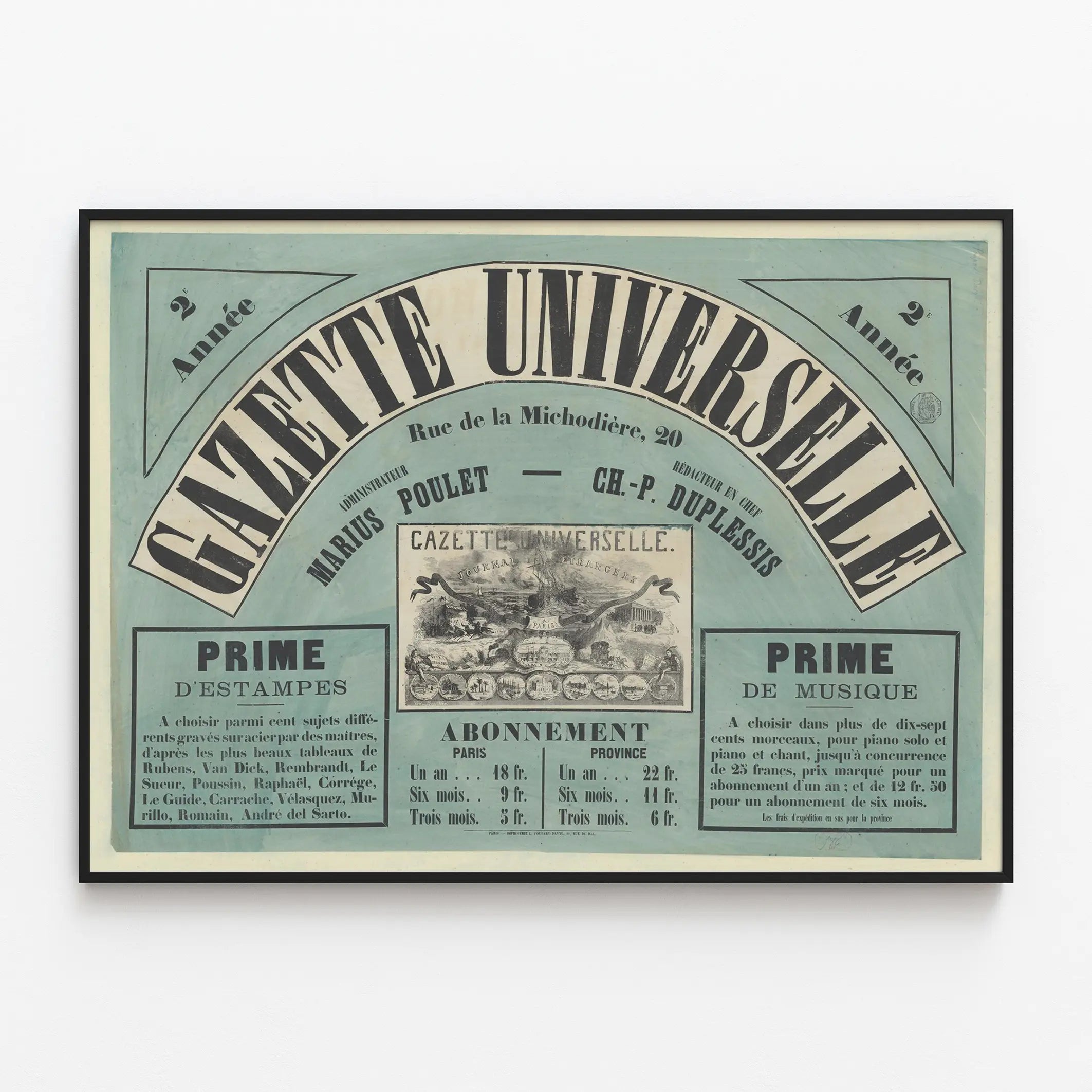 Plakat Vintage Gazette Universelle Rue de la Michodière 20
