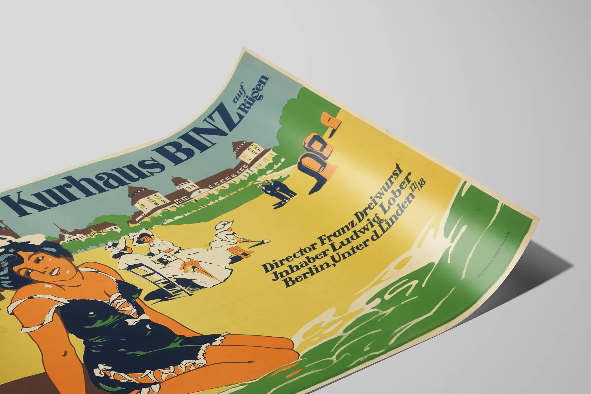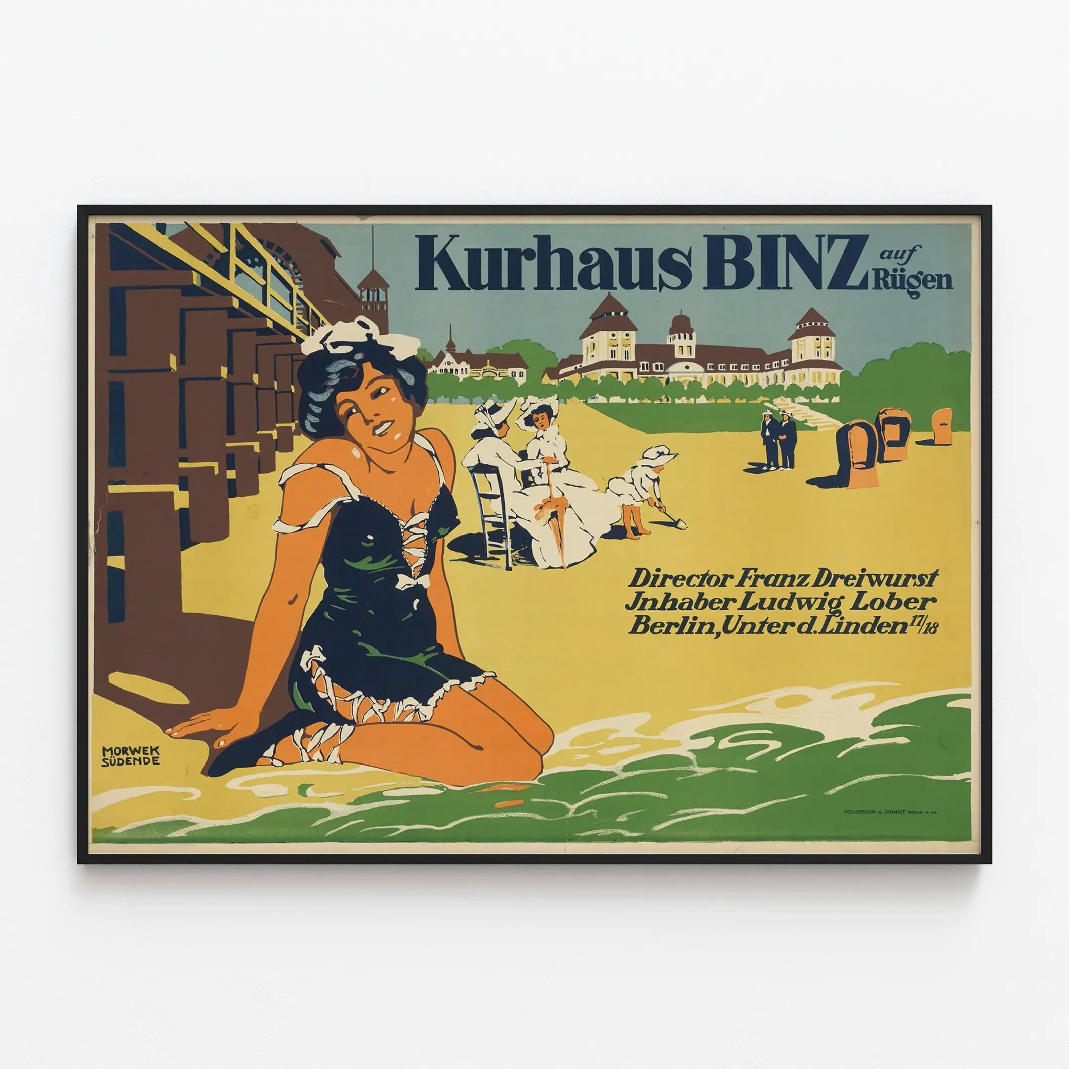 Plakat vintage Kurhaus Binz na Rügen – Retro dekoracja ścienna