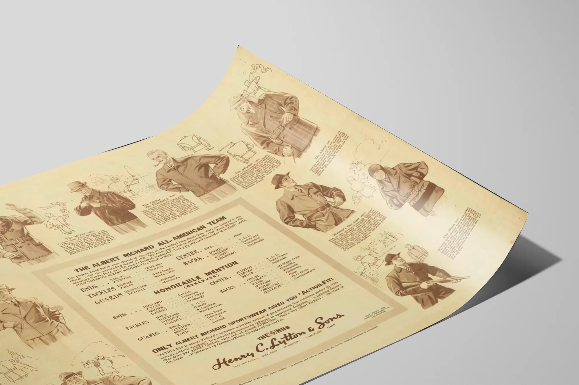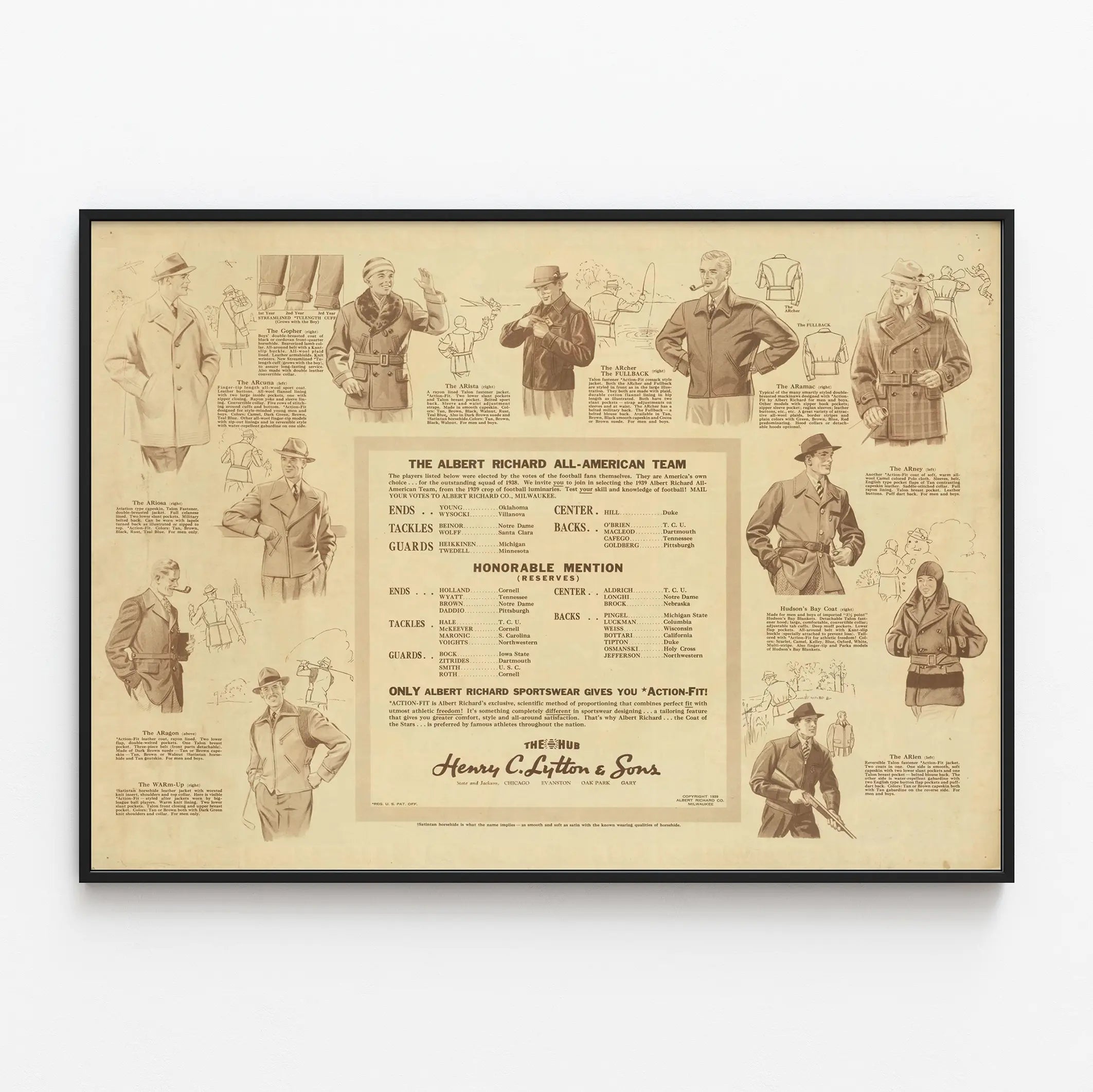 Plakat vintage moda męska Albert Richard 1939 - Drużyna futbolu amerykańskiego All-American