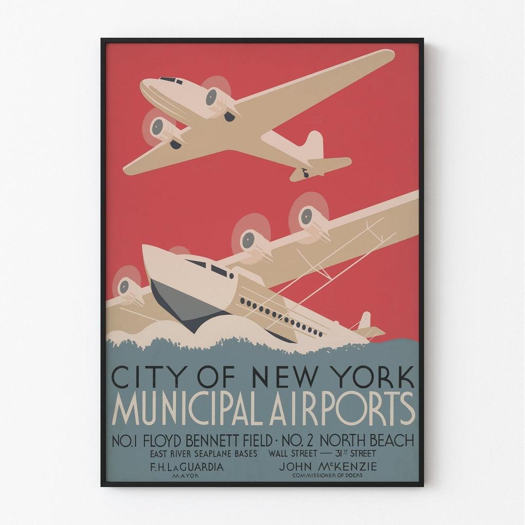 Plakat vintage - Miasta Nowy Jork Lotniska Miejskie
