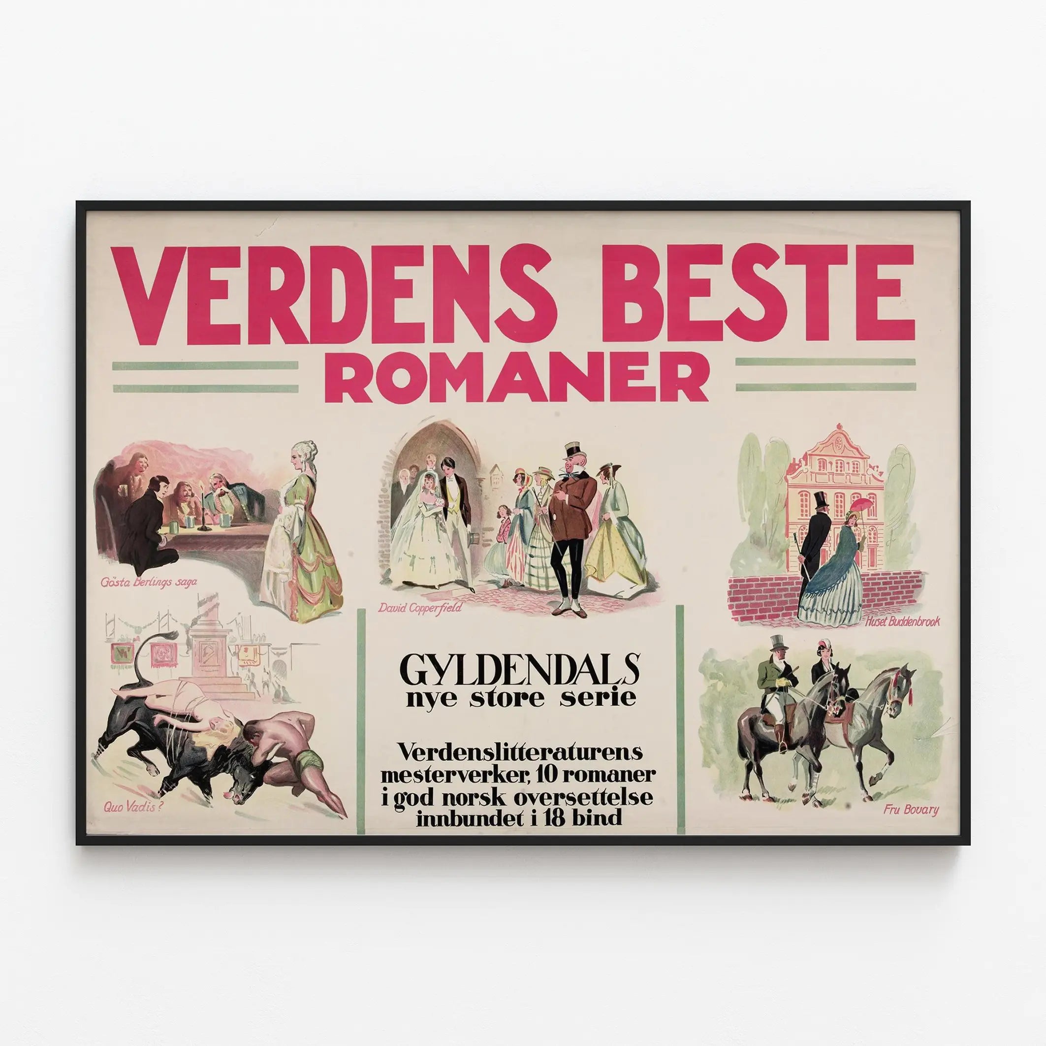 Plakat vintage Verdens Beste Romaner - Dekoracja ścienna o tematyce literackiej skandynawskiej
