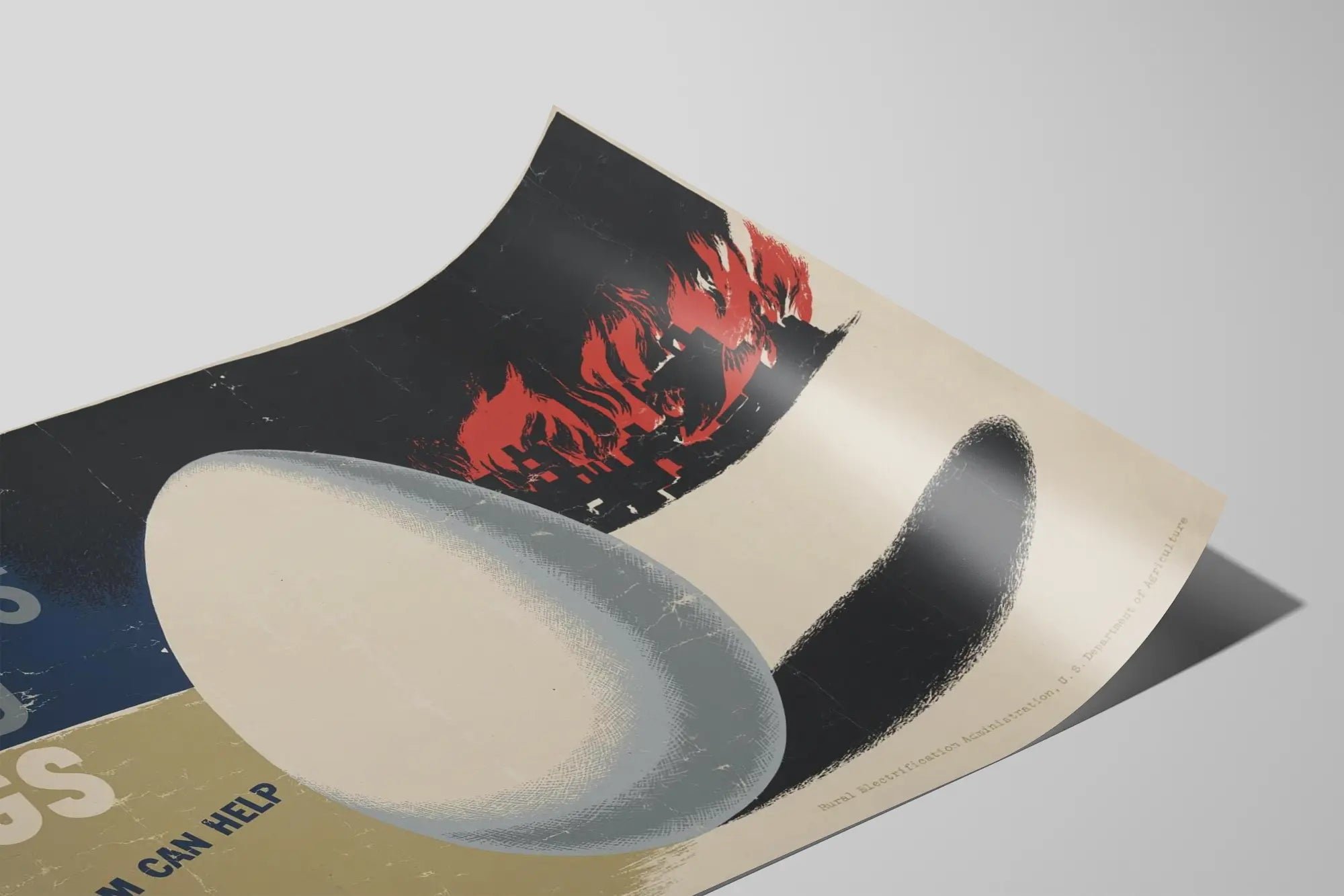 Ten plakat łączy prostotę z symboliką, czyniąc go wyjątkową dekoracją ścienną. Kontrast między centralnym jajem a tle płomieni przyciąga wzrok i zachęca do refleksji nad znaczeniem rolnictwa i roli farm w wspieraniu ważnej sprawy. To autentyczny wybór dekoracyjny, który łatwo wkomponuje się w różne style wnętrz, od nowoczesnych po retro.