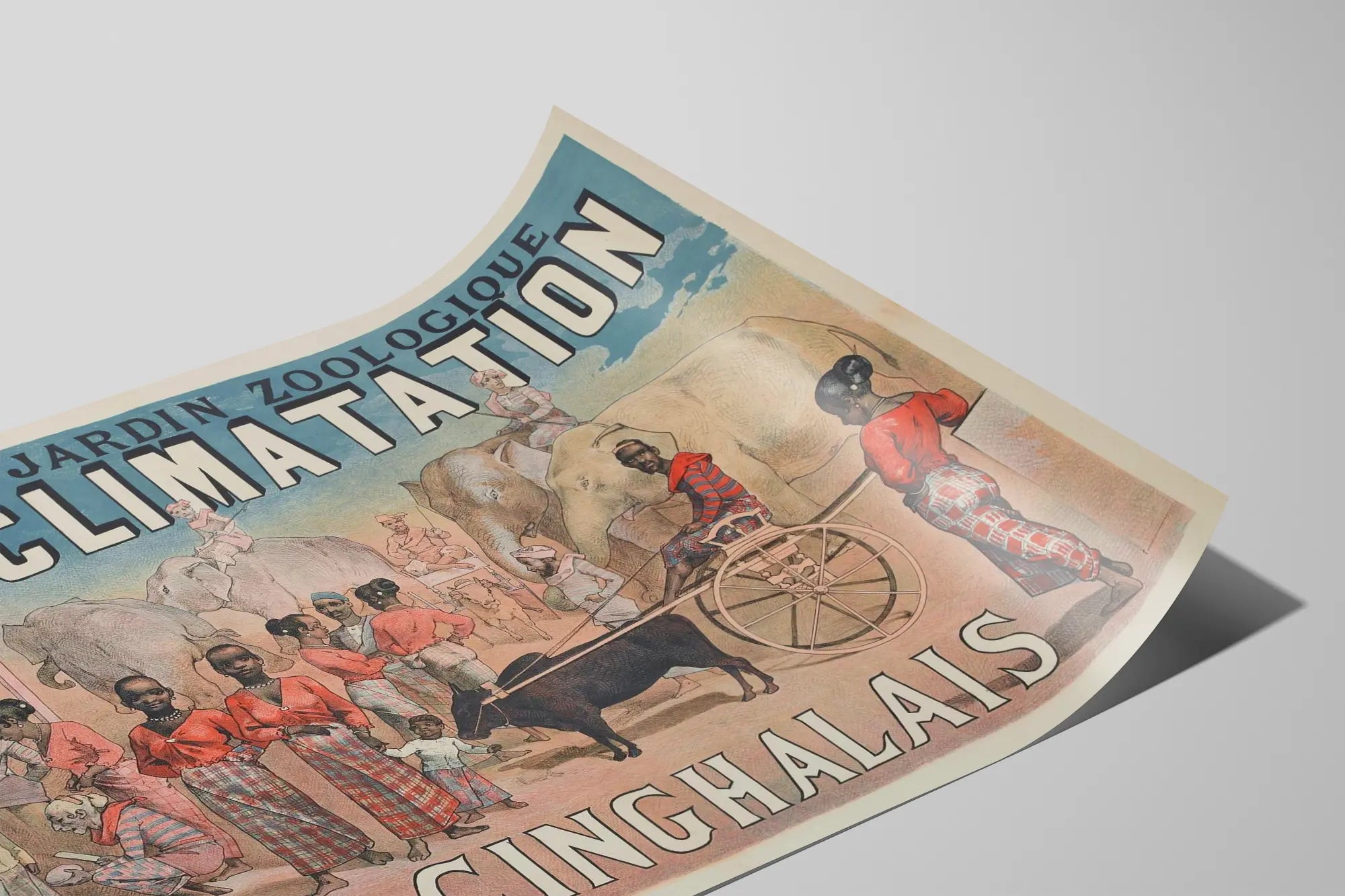 Ta vintage'owa plakat z Ogrodu Zoologicznego Aklimatyzacji Cinghalais to unikalny element dekoracji ściennej, który wniesie do Twojego wnętrza odrobinę autentyczności i historii. Przedstawia bogato ilustrowaną scenę z postaciami ubrane w tradycyjne stroje cinghalajskie, otoczonymi przez słonie i inne zwierzęta, oferując wizualną immersję w egzotyczny i fascynujący świat. Ilustracja podkreśla harmonię między człowiekiem a zwierzętami w środowisku zoologicznym, akcentując znaczenie kultury i natury. Ta dekoracja ścienna jest idealna dla miłośników starej grafiki, podróży i odległych kultur. Jej styl retro oraz delikatne, kontrastowe kolory pozwalają na łatwe wkomponowanie tego obrazu w różne aranżacje, zarówno nowoczesne, klasyczne, jak i eklektyczne. Niezależnie od tego, czy chcesz ozdobić salon, biuro czy poczekalnię, ten artystyczny plakat doda charakteru Twojej przestrzeni. Ta vintage'owa plakat jest również doskonała dla kolekcjonerów historycznych przedmiotów związanych z zoologią lub wystawami kolonialnymi. Wydrukowany w wysokiej jakości, ten obraz ścienny to świetny sposób na ożywienie i pokazanie fragmentu przeszłości poprzez starannie wykonane dzieło graficzne. Wprowadź unikalną i pełną uroku atmosferę dzięki temu klasycznemu plakatowi z ogrodu zoologicznego.