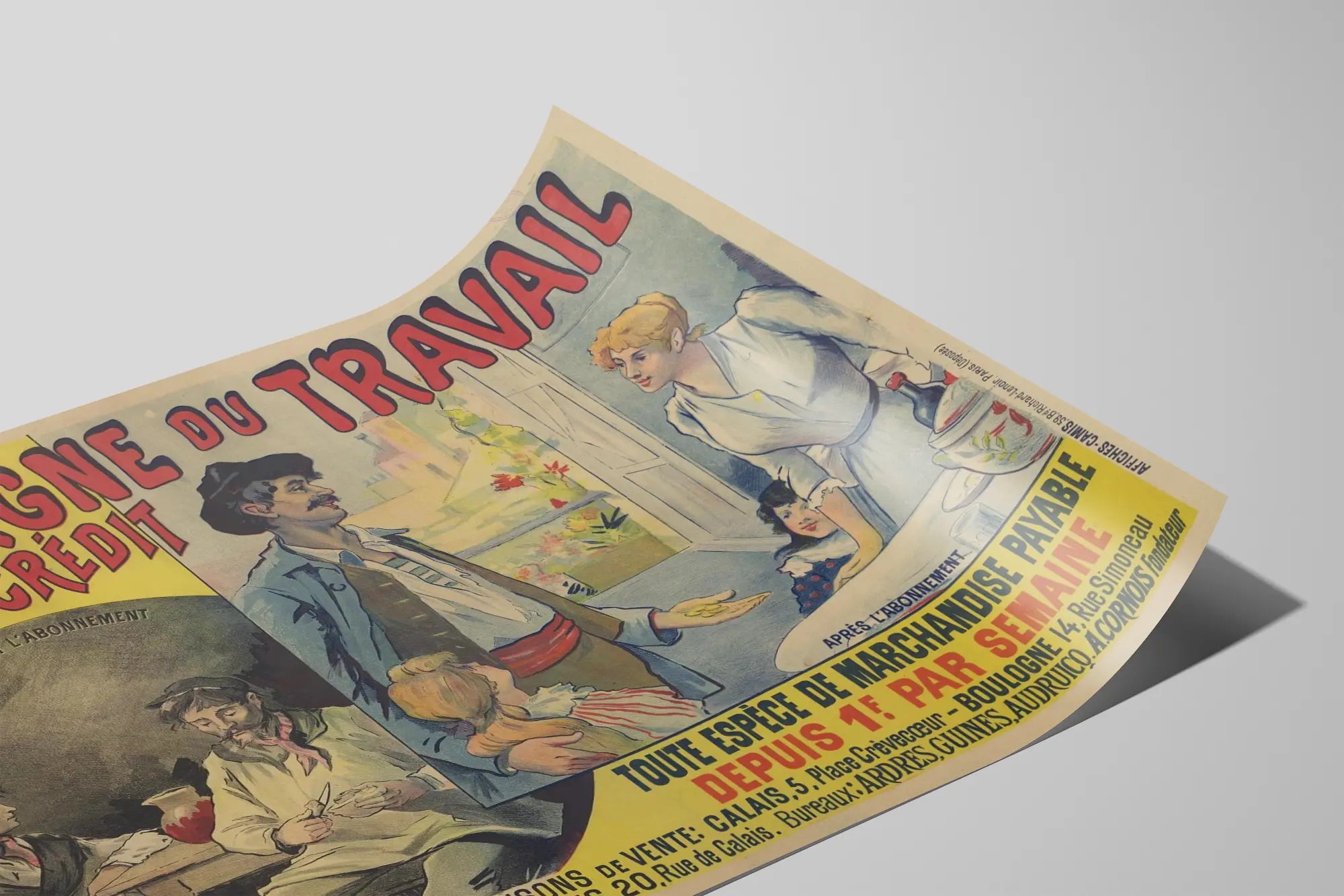 Podsumowując, ta plakat "L'Épargne du Travail Vente à Crédit" to dekoracja ścienna zarówno estetyczna, jak i pełna znaczenia, podkreślająca pracę i odpowiedzialne zarządzanie finansami osobistymi. Styl retro i przekaz społeczny czynią z niej oryginalny wybór do personalizacji wnętrza z nutą autentyczności i historii.