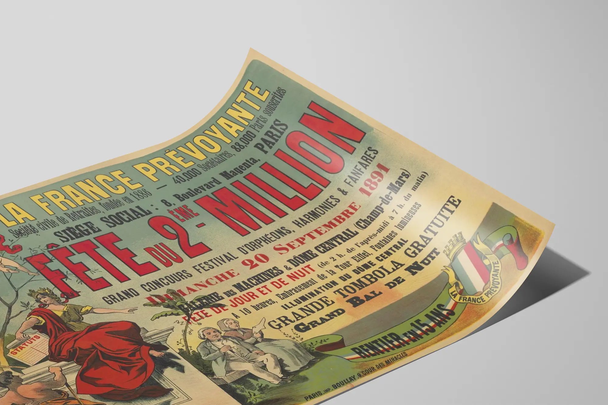 Plakat vintage La France Prévoyante święto 2. miliona 1891