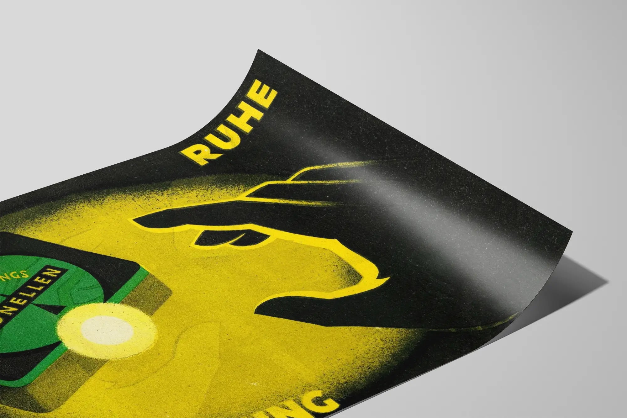 Ta plakat vintage zatytułowany "Ruhe Entspannung" jest unikalnym elementem, który wniesie do Twojej dekoracji ściennej odrobinę spokoju i harmonii. Odwołując się do estetyki retro, wyróżnia się dominującymi kolorami żółtym i zielonym, kontrastującymi z czernią, oraz stylizowanym przedstawieniem ręki sięgającej po pudełko z etykietą "Beruhigungs Bionellen", co przywołuje skojarzenia z relaksem i ukojenie. Ten oryginalny plakat doskonale sprawdzi się w każdym pomieszczeniu przeznaczonym do odpoczynku lub medytacji, takim jak salon, sypialnia czy gabinet.