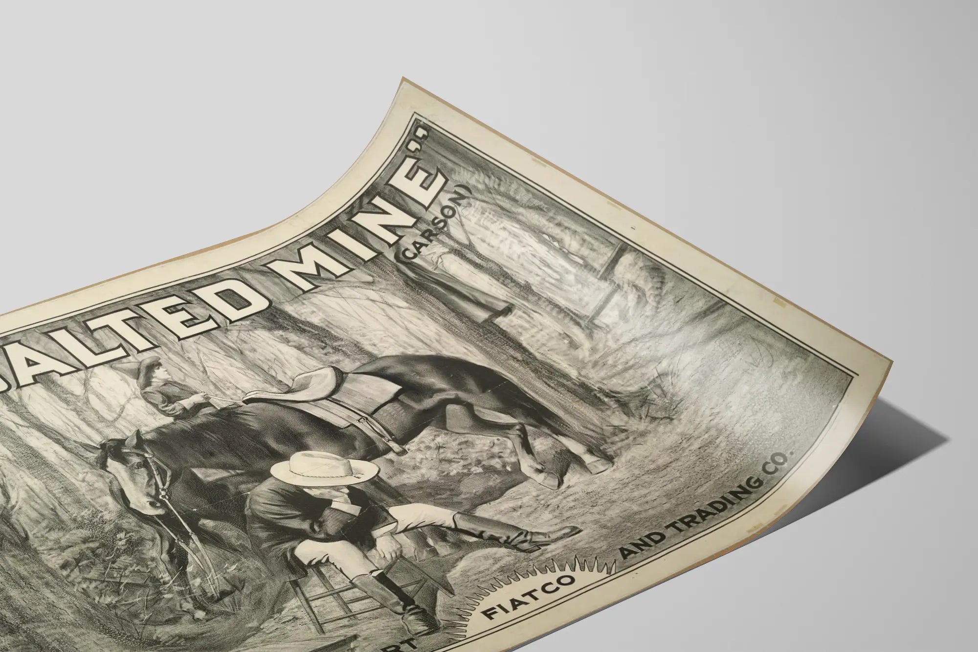 Plakat vintage Kopalnia Soli - Dekoracja ścienna w stylu western w czerni i bieli