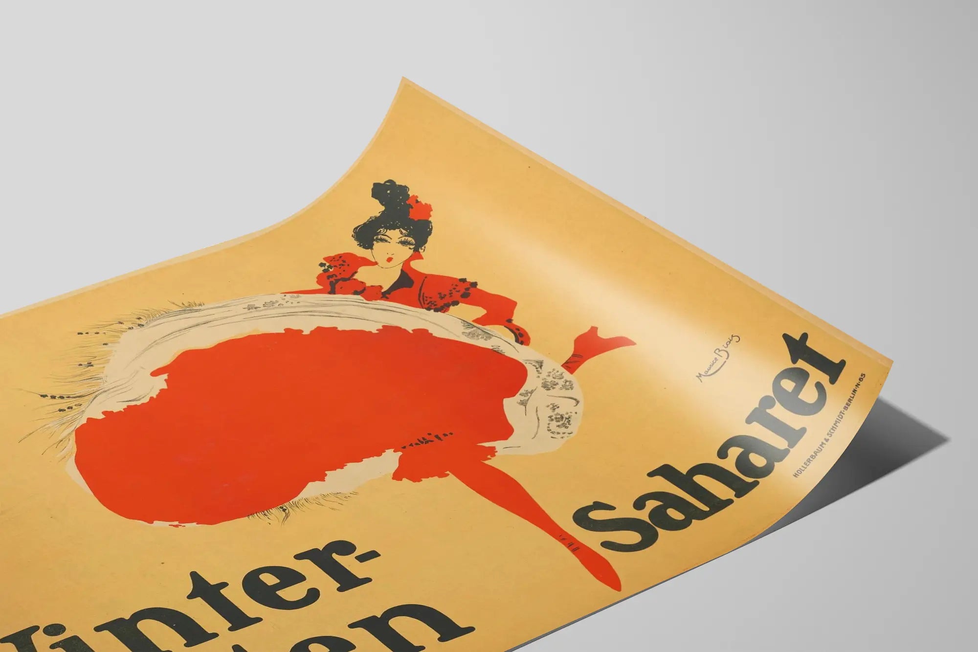 Wybierając ten plakat Winter-Garten Saharet, wprowadzasz do swojej dekoracji ściennej dzieło graficzne opowiadające silną wizualną historię, inspirowaną spektaklami i sztukami performatywnymi dawnych czasów. To także oryginalny sposób na personalizację wnętrza z artystycznym akcentem pełnym charakteru.