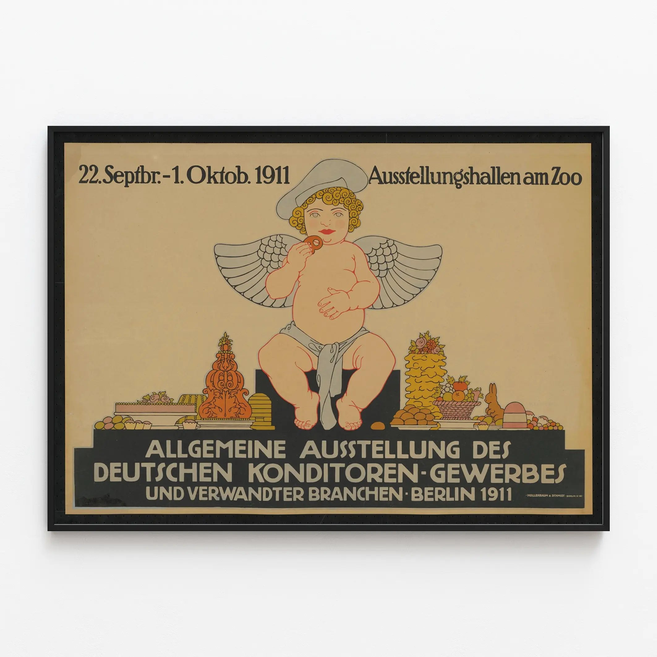 Poznaj tę plakat w stylu retro, ilustrujący Ogólną Wystawę Niemieckiego Rzemiosła Cukierniczego, wielką niemiecką wystawę poświęconą sztuce cukiernictwa i powiązanym zawodom, która odbyła się w Berlinie w 1911 roku. Ten plakat w stylu vintage przedstawia głównego bohatera – rozkosznego anioła, który delektuje się wypiekiem, otoczonego różnorodnymi słodkościami i cukierniczymi dziełami. Prosta grafika i stonowane kolory sprawiają, że jest to idealny element dekoracji ściennej dla miłośników historii i gastronomii, a także dla tych, którzy poszukują odrobiny klasycznej elegancji w swoim wnętrzu. Ten stary plakat, z tekstem w języku niemieckim, przypomina ważne wydarzenie kulturalne i kulinarne początku XX wieku, podkreślając zawody cukiernicze i rzemieślnicze wypieki. Doskonały do oprawienia i wyeksponowania w kuchni, salonie lub sklepie poświęconym cukiernictwu, ta dekoracja ścienna wnosi autentyczny urok i vintage’ową atmosferę dzięki unikalnym elementom graficznym i estetyce z epoki. Wprowadź historyczną i smakowitą atmosferę na swoje ściany, ta plakat celebruje sztukę słodkości i niemiecką doskonałość rzemieślniczą.