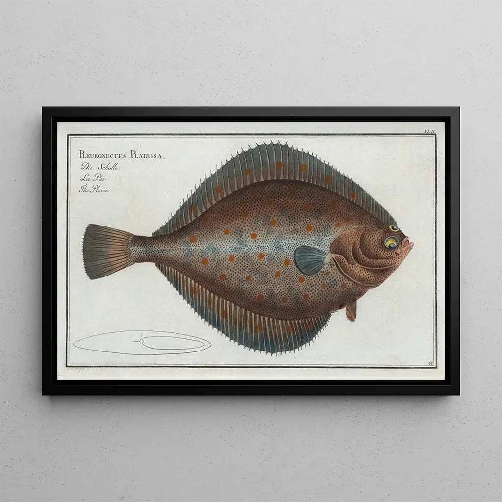 Druk artystyczny "Pleuronectes platessa, la plie" to idealny wybór dekoracyjny dla miłośników natury i morza. Niezależnie od tego, czy znajdzie się w kuchni, jadalni czy biurze, ta reprodukcja wnosi odrobinę oryginalności i elegancji. Jakość reprodukcji zapewnia wierne oddanie szczegółów i kolorów oryginalnego dzieła, pozwalając cieszyć się kojącą i inspirującą atmosferą. Dzięki swojej estetyce, to dzieło staje się punktem centralnym, który wzbudza ciekawość i podziw odwiedzających.