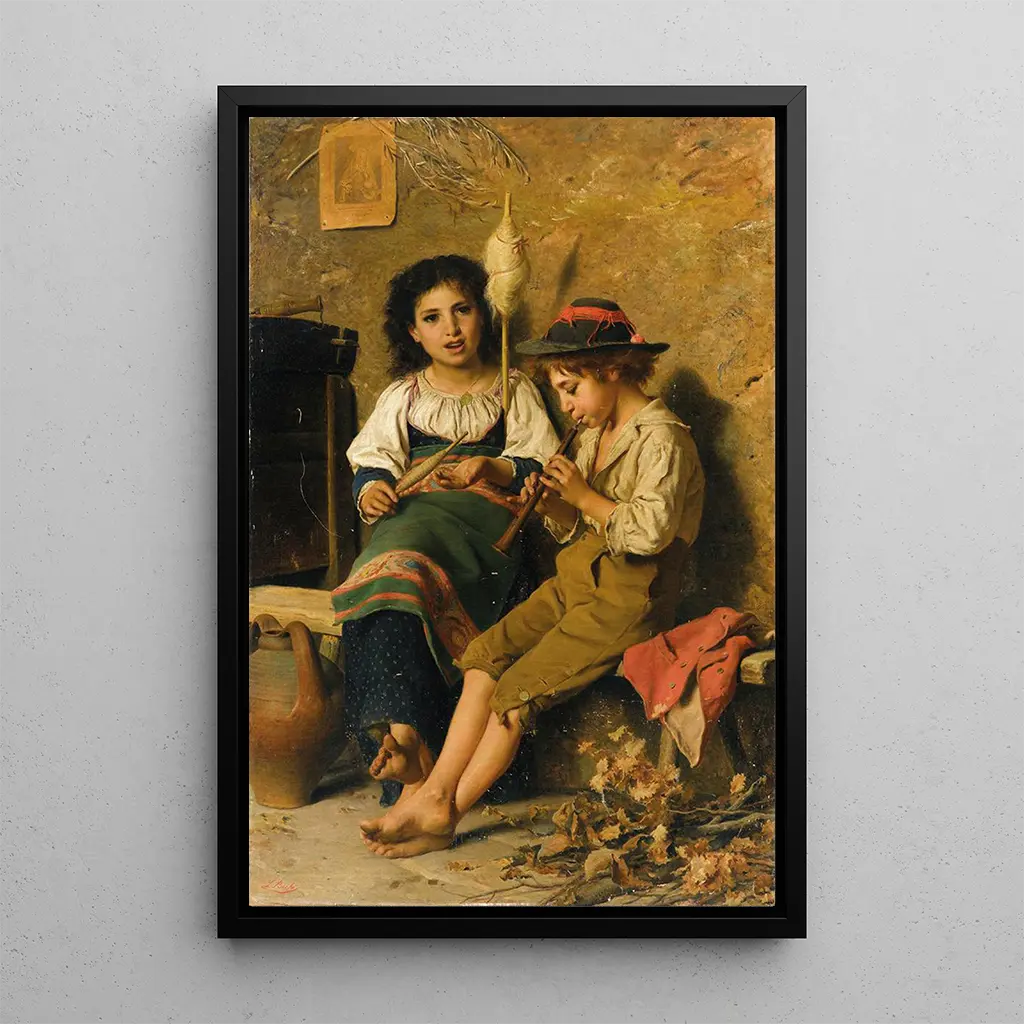 Obraz Fileuse et joueur de flûte - Luigi Bechi | Druk artystyczny
