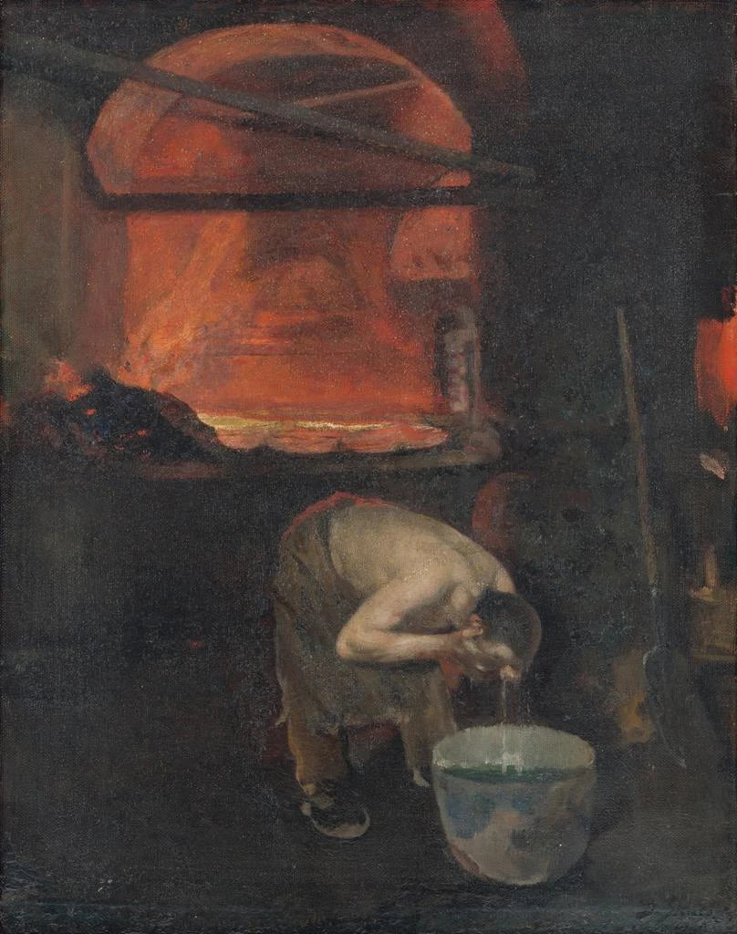 Styl Skuteckého wyróżnia się zarówno realizmem, jak i poetyckim podejściem. W "Après le travail" formy są delikatnie modelowane, podczas gdy światło odgrywa kluczową rolę, tworząc cienie i refleksy, które dodają głębi scenie. Każdy element dzieła jest starannie przemyślany, od tekstur obiektów po wyrazy twarzy postaci, ukazując imponującą mistrzowską technikę. To obraz nie tylko przedstawia scenę z codziennego życia; uchwyca jej istotę, przemieniając zwykły moment w celebrację piękna i spokoju. Kompozycja, zrównoważona i dynamiczna, kieruje wzrok widza, zapraszając do eksploracji każdego zakątka obrazu i wchłonięcia jego atmosfery.