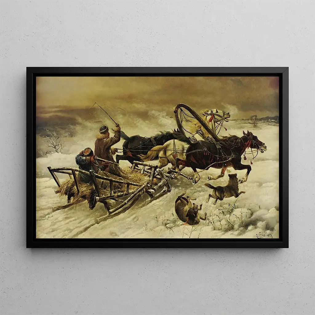 La Chasse au loup d'Adolf Baumgartner-Stoiloff est une œuvre qui plonge le spectateur dans l'intensité d'une scène de chasse. Les couleurs vives et les détails minutieux des animaux et du paysage créent une atmosphère dynamique et immersive. La technique de l'artiste, mélange de réalisme et d'impressionnisme, donne vie aux mouvements des chasseurs et des loups, tandis que le fond naturel évoque la majesté des forêts. Cette toile, riche en émotions, invite à une contemplation active, où chaque regard révèle de nouvelles nuances de la nature sauvage.