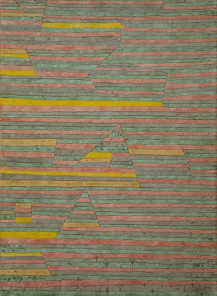 Paul Klee, szwajcarski artysta urodzony w 1879 roku, jest jedną z ikon ruchu ekspresjonistycznego i Bauhausu. Jego kariera, bogata i różnorodna, jest naznaczona wieloma wpływami, od sztuki afrykańskiej po muzykę, przez sztukę ludową. Klee potrafił wypracować unikalny język wizualny, w którym abstrakcja i figuryzm się spotykają. "Monuments à G" wpisuje się w okres, gdy sztuka nowoczesna dąży do wyzwolenia się od tradycyjnych konwencji, a Klee, dzięki swojemu zabawnemu i poetyckiemu podejściu, przyczynia się do redefinicji granic sztuki. Jego dziedzictwo trwa, inspirując wielu współczesnych artystów do eksploracji emocjonalnych i symbolicznych wymiarów koloru i formy.