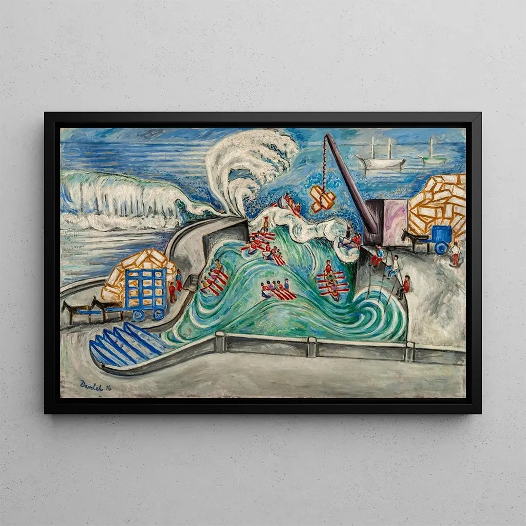 Port atlantique : hołd dla piękna morskiego W "Port atlantique" Nils von Dardel przenosi nas w serce tętniącego życiem pejzażu morskiego. Odcienie niebieskiego i zielonego harmonijnie się przenikają, przywołując głębię oceanu i spokój brzegów. Technika malarstwa olejnego pozwala artyście uchwycić światło w niemal namacalny sposób, tworząc spokojną i kontemplacyjną atmosferę. Żaglowce, majestatyczne, zdają się tańczyć na falach, podczas gdy niebo, pokryte chmurami, dodaje dramatyzmu tej idyllicznej scenie. Każde pociągnięcie pędzla ukazuje pasję Dardela do morza i jego otoczenia, zapraszając widza do zanurzenia się w tej poetyckiej wizji. Nils von Dardel : pionier szwedzkiego modernizmu Urodzony w 1888 roku, Nils von Dardel jest ikoną szwedzkiego modernizmu. Pod wpływem europejskich ruchów artystycznych swojego czasu, rozwija unikalny styl łączący realizm i abstrakcję. Jego kariera, naznaczona podróżami do Francji i Włoch, pozwala mu eksplorować różne techniki i czerpać inspirację od wielkich mistrzów. Dardel wyróżnia się zdolnością do uchwycenia istoty pejzaży i scen z codziennego życia, jednocześnie wprowadzając nutę marzenia. "Port atlantique" świadczy o jego umiejętności łączenia natury i emocji, czyniąc go niekwestionowanym artystą XX wieku. Dekoracyjna reprodukcja o wielu zaletach Reprodukcja "Port atlantique" to idealny wybór dekoracyjny, który upiększy Twoje wnętrze. Niezależnie od tego, czy w salonie, biurze czy sypialni, ten obraz doda odrobinę spokoju i elegancji Twojej przestrzeni. Jakość druku gwarantuje wierne odwzorowanie kolorów i detali oryginalnego dzieła, umożliwiając pełne cieszenie się artystyczną wizją Dardela. Estetyczny urok tej płótna tkwi w jego zdolności do wywoływania emocji, jednocześnie harmonijnie wpisując się w różne style dekoracji. Zafunduj sobie to dzieło, aby odmienić swoje otoczenie i zaprosić do kontemplacji.