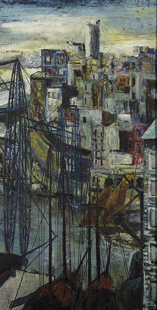 « Port de Marseille » de Hanns Ludwig Katz est une œuvre captivante qui évoque l'animation et la beauté du célèbre port français. Les couleurs vives et les contrastes saisissants illustrent la vitalité du lieu, où les bateaux se mêlent aux silhouettes des dockers et aux bâtiments historiques. La technique de Katz, qui combine réalisme et touches impressionnistes, permet de ressentir l'effervescence de la vie maritime. Chaque détail, des voiles blanches aux reflets sur l'eau, contribue à créer une atmosphère vivante et dynamique, invitant le spectateur à s'immerger dans cette scène portuaire.